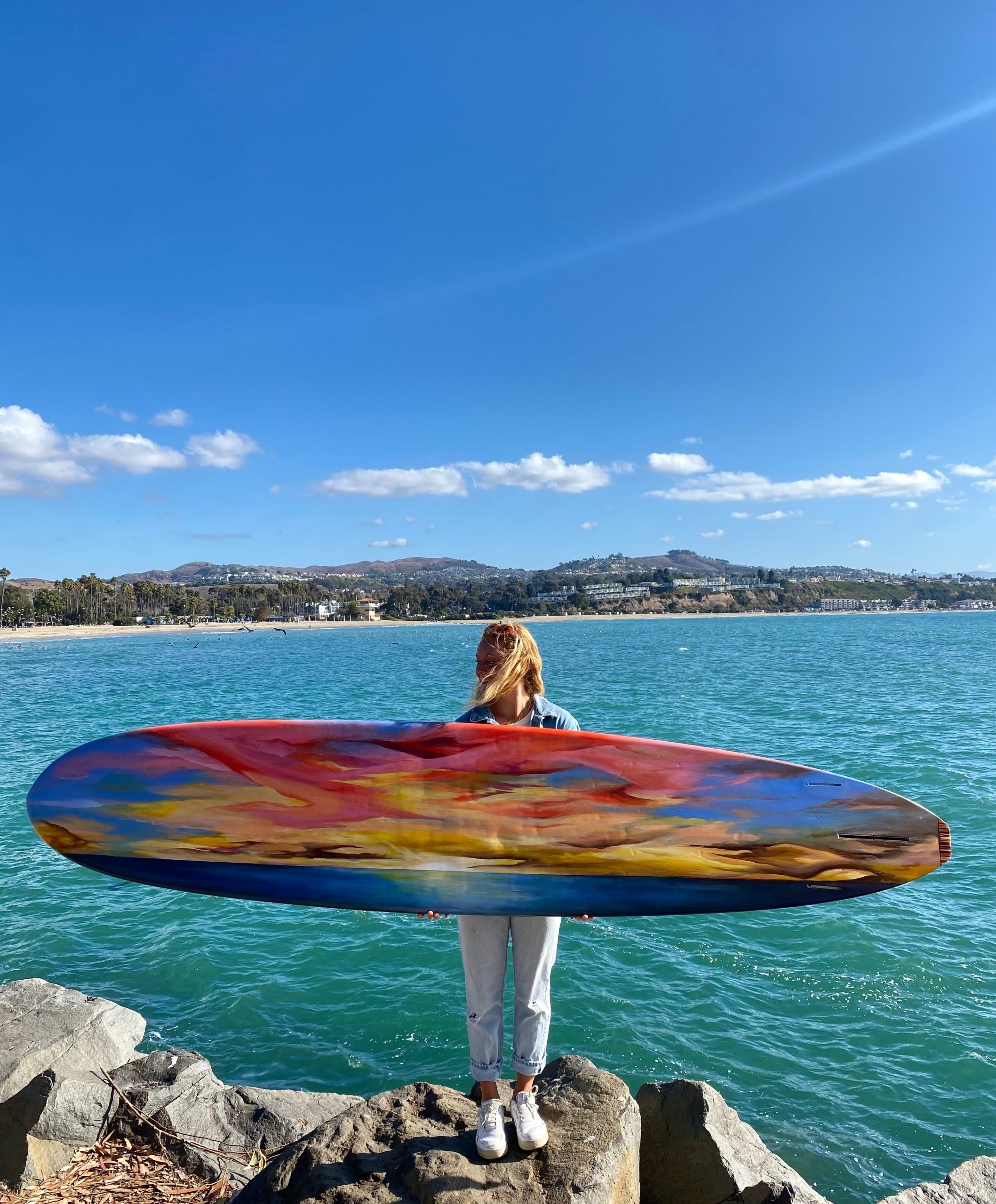Later on, I was required to complete a summer internship for school but had no clear direction of where to start. During a conversation with my professor, I mentioned a far out curiosity I’d always had about the surfboard shaping industry. To my surprise she ended up knowing a friend of a friend she’d met at a wedding who happened to be a surfboard shaper. She immediately called her friend up, and by the end of that same day I was offered an internship with Adam Davenport, founder of Davenport Surfboards. He enthusiastically offered me one of the best opportunities of my life and the experience impacted me far beyond sanding, creating pigments for resin and cutting fiberglass cloth. For the first time, I felt aligned with something that not only fueled my passions but also had the potential to grow into a real career.