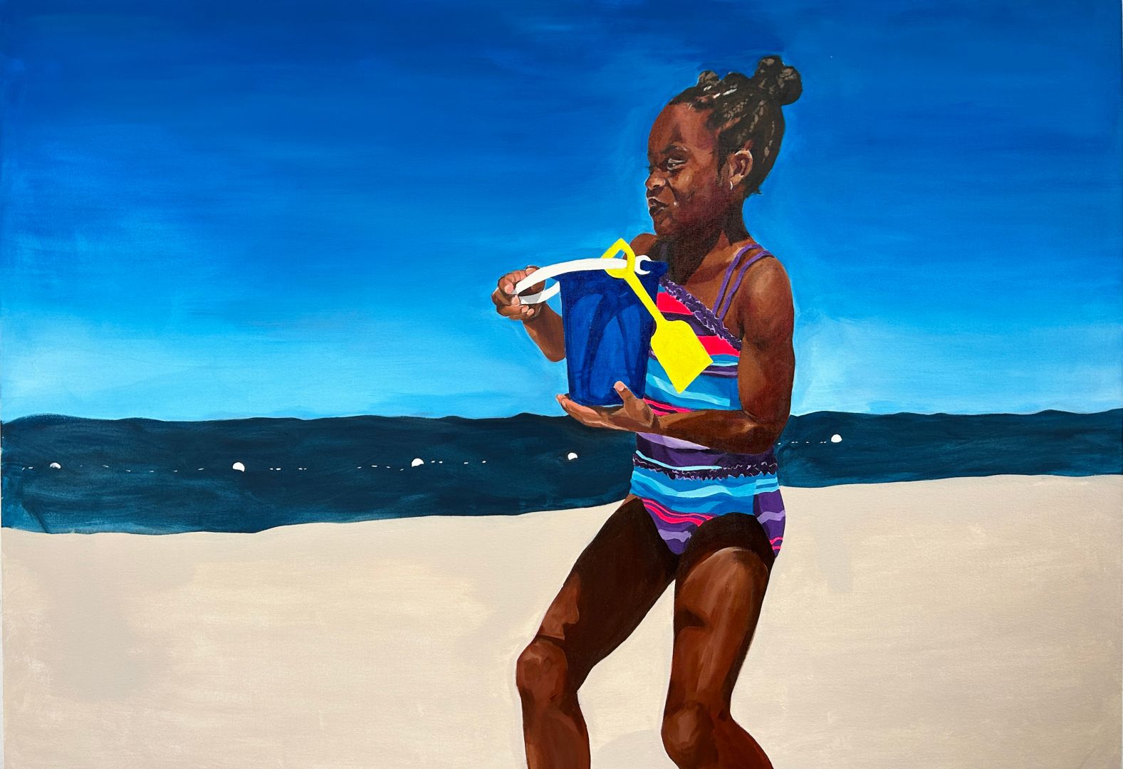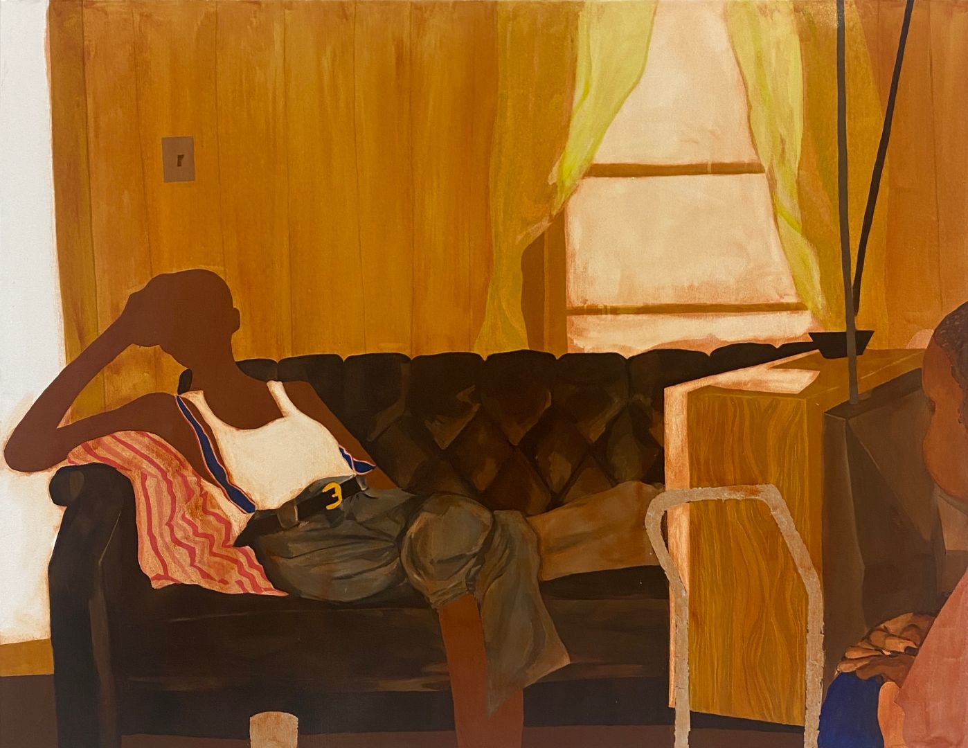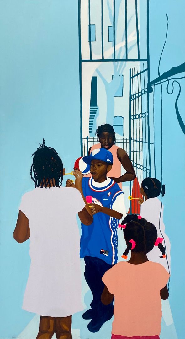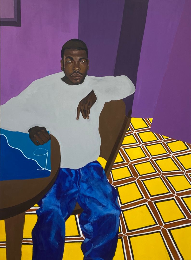 My practice has developed in so many ways over the last few years. I started painting my junior year of high school and realized that it was something that I was truly passionate about. I’m now in my junior year of college and it’s made me realized how my work sits outside the rest of my peers. Most of my class critiques of silent and my work is often talked down. But with these in mind it’s pushed me to consider who I’m making work for and thinking about the importance of telling the stories of my family and people that look like me. In high school I was painting on my bedroom floors and now I’m painting 6 foot paintings that really catch a viewers eye. It made me realized that I need to take advantage of the space that I have while I have it.