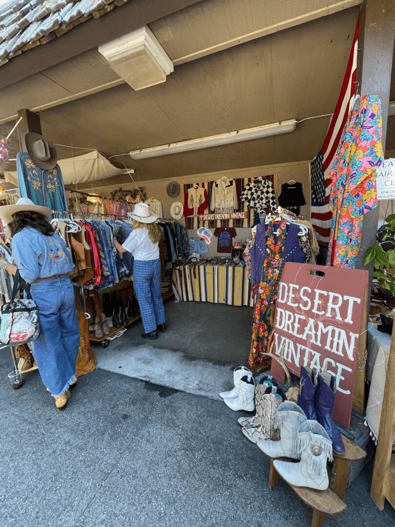 In 2016 I visited Joshua Tree, CA for the first time with my little sister. To this day it is one of our most memorable experiences together. This is where my love for the desert began, and where Desert Dreamin’ Vintage was born. During this time I was following a gal on Instagram who was selling vintage Native American jewelry, and I myself had quite the collection and was wanting to make some extra cash, so I started posting jewelry and home decor for sale and it took off from there. A few months later I applied to sell at my very first market and was accepted to vend at The Topanga Vintage Market in Woodland Hills. I was so excited because at this point my studio apartment porch was over flowing with bins filled with antiques and treasures I had found since I moved to California. I purchased a 10×20 booth space, that I filled with vintage trinkets, home decor, furniture, kitchen wares, jewelry and ONE rack of clothing. When the day ended I had sold one lamp, and nearly the entire rack of clothing. Unassumingly a vision was born. From there I immersed myself in vintage clothing and sold at any market around LA that would have me. Fast forward to 2022, I quit my job and started slinging vintage full-time. I started focusing on vintage western wear because well, thats what I think is cool. I had always thought it would be a dream to travel around to music festivals and sell my vintage wares, so I started asking. I couldn’t believe it, I kept getting accepted. One after another. I’ve gotten to see a parts of the country I never imagined being able to see. I’ve met the raddest of folks, some I’m lucky enough to call my dearest friends. My favorite musicians have shopped my booth for their set fit. And here I am today, gearing up for another “summer tour”. Only this time, when I return home, I’ve got Desert Dreamin’ Outpost to tend to. A curated collection of vintage western wear that holds space for local desert artisans. My new desert dream.