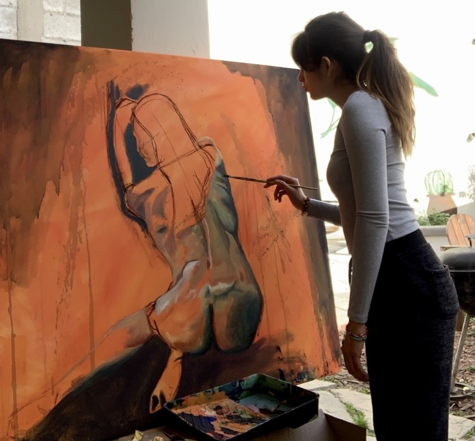 I currently dedicate myself to painting on canvas and murals and at the same time I have my craft business.