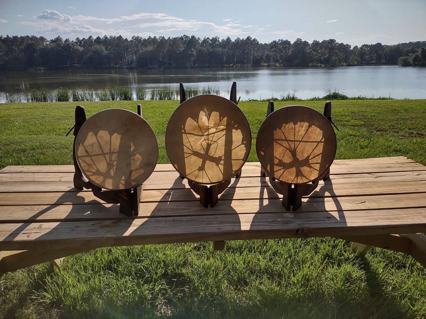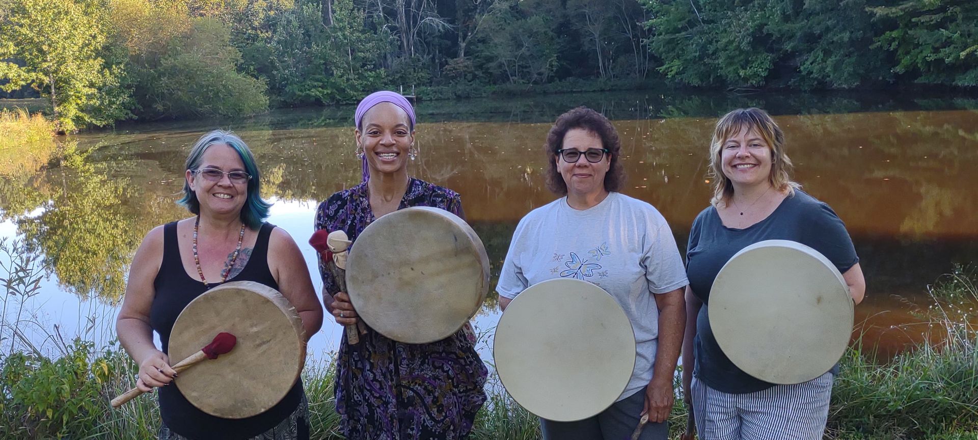 In November 2021 we attended our second spirit drum creation workshop with Pathdrummer, an event that would change our lives in an unimaginable way, beyond our wildest dreams!!! Michael had a brilliant idea right after that, what if the they taught us how to facilitate the drum creation workshops? Well, if you don’t ask, the answer is always no, so we asked! Even though we knew the question was ridiculous, they said YES! In May 2022 the amazing Thom & Judy (Pathdrummer) taught us everything they could think of about drum building, shared their supplier information with us, and we were certified as professional Spirit Drum Creation Workshop facilitators!