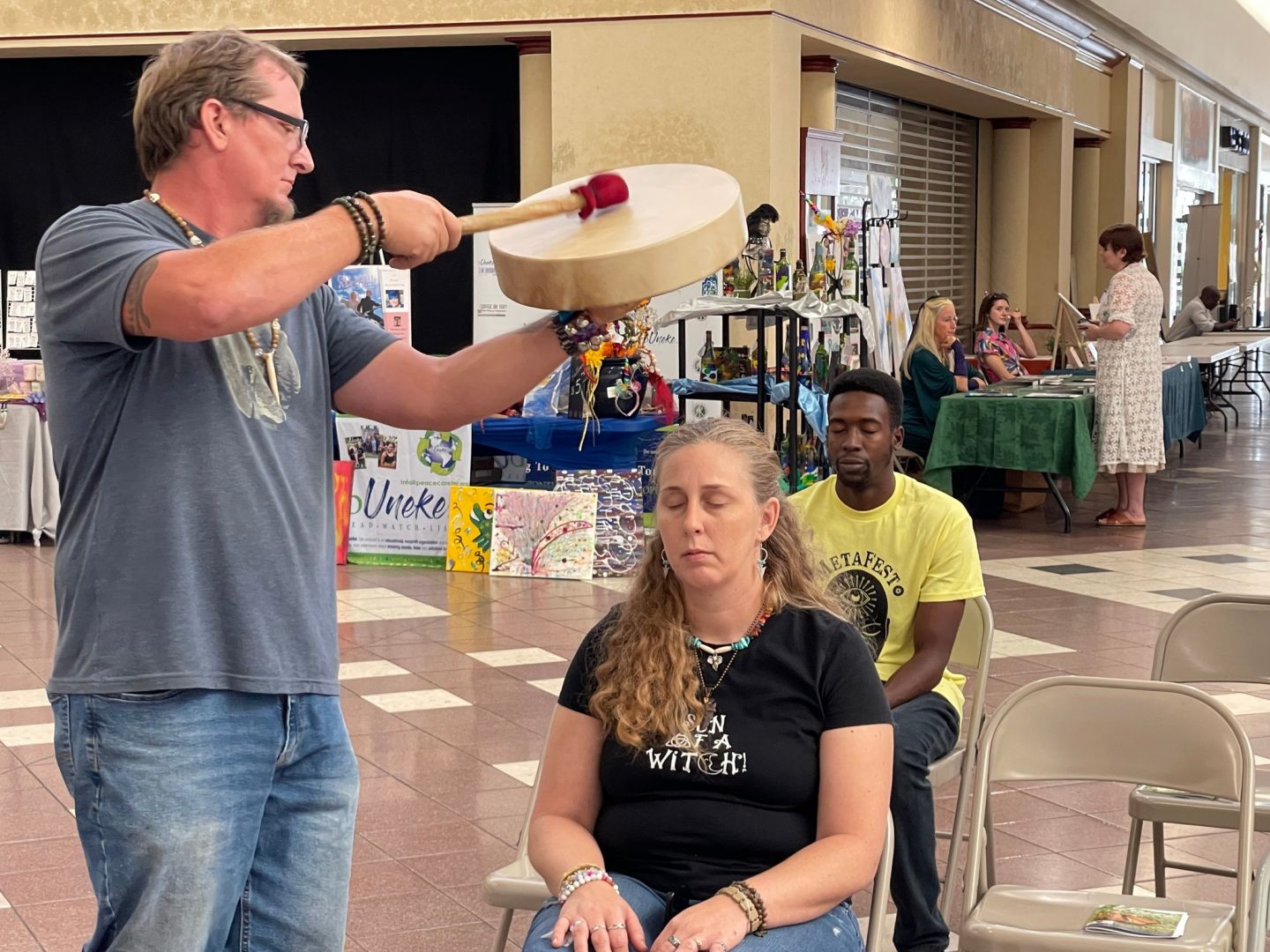 The biggest lessons in all of this were to follow our passion, and trust Spirit to provide! We’re so honored to be able to bring our mobile metaphysical market & apothecary to people! Now we also get to help them give birth to amazing Spirit Drums! The drums have been changing us and our lives since the first time I had body drumming done on me, as part of my Reiki Master training in 2016.