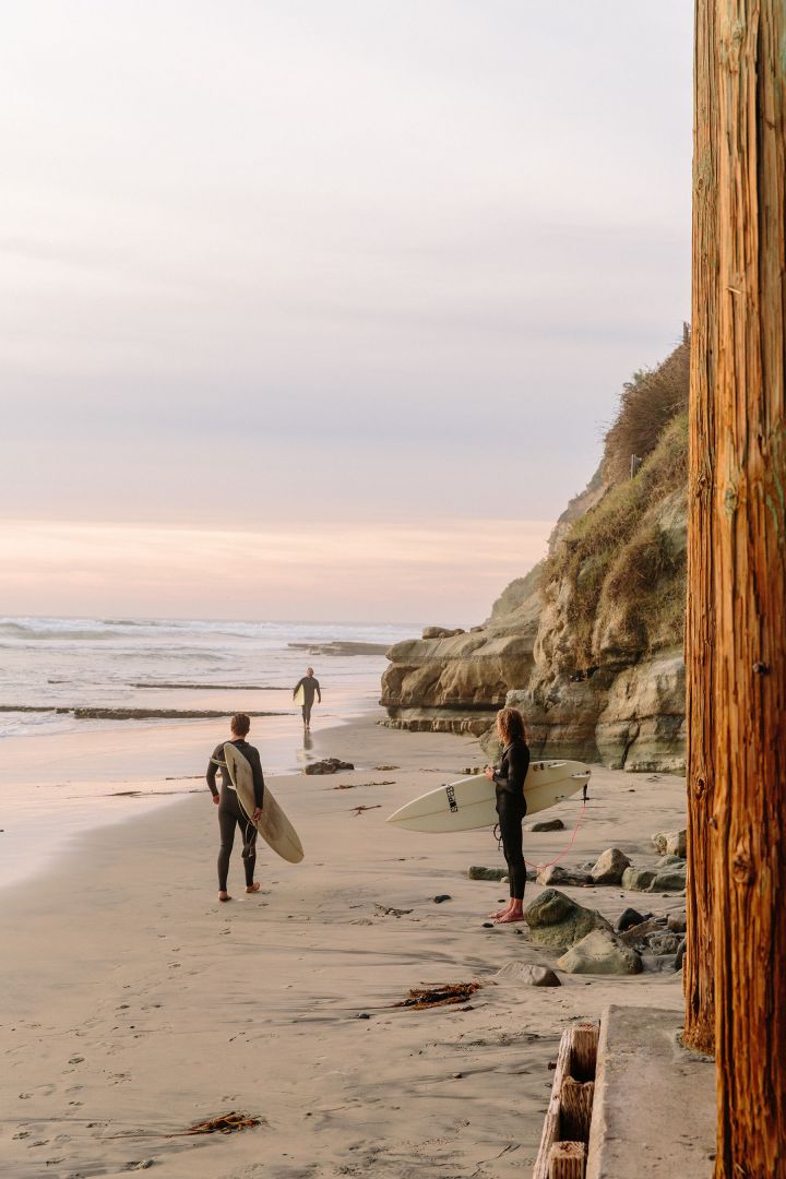 I would take them to Atelier Manna in Leucadia for lunch, definitely the best food around! Then a tour with the Moke, form Moke&Sun, they have a wonderful digital guide book with great spots in and around town. If it’s a Sunday, we could stop at the Leucadia’s farmer’s market. Then off to Ponto Beach for some hours in a true sauna, that is there on Mondays and Tuesdays. A few hours of sauna and cold plunging in the ocean (if were are doing this in winter & spring). For sunset my favorite bar in town is the Saga Bar at Alila Marrea. For dinner I love Valentina in Leucadia and if more casual Corner Pizza, the Taco Stand or the Hamburger Hut. For a little trip up north I highly recommend Oceanside. The Tremont Collective has great Coffe shops and stores, the Mission Pacific has a beautiful roof top and the Seabird a great spa for a non toxic manicure or pedicure or a massage. The High Low Coffe shop right there is great for a Coffe or quick lunch.