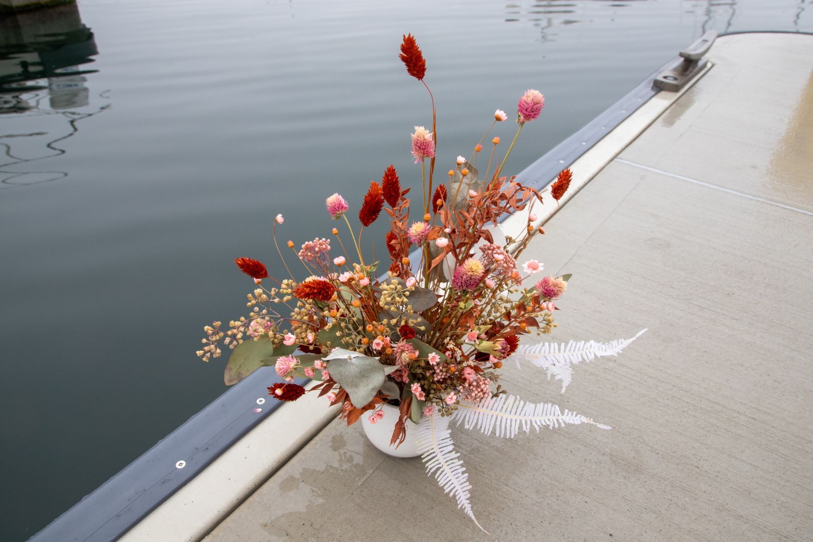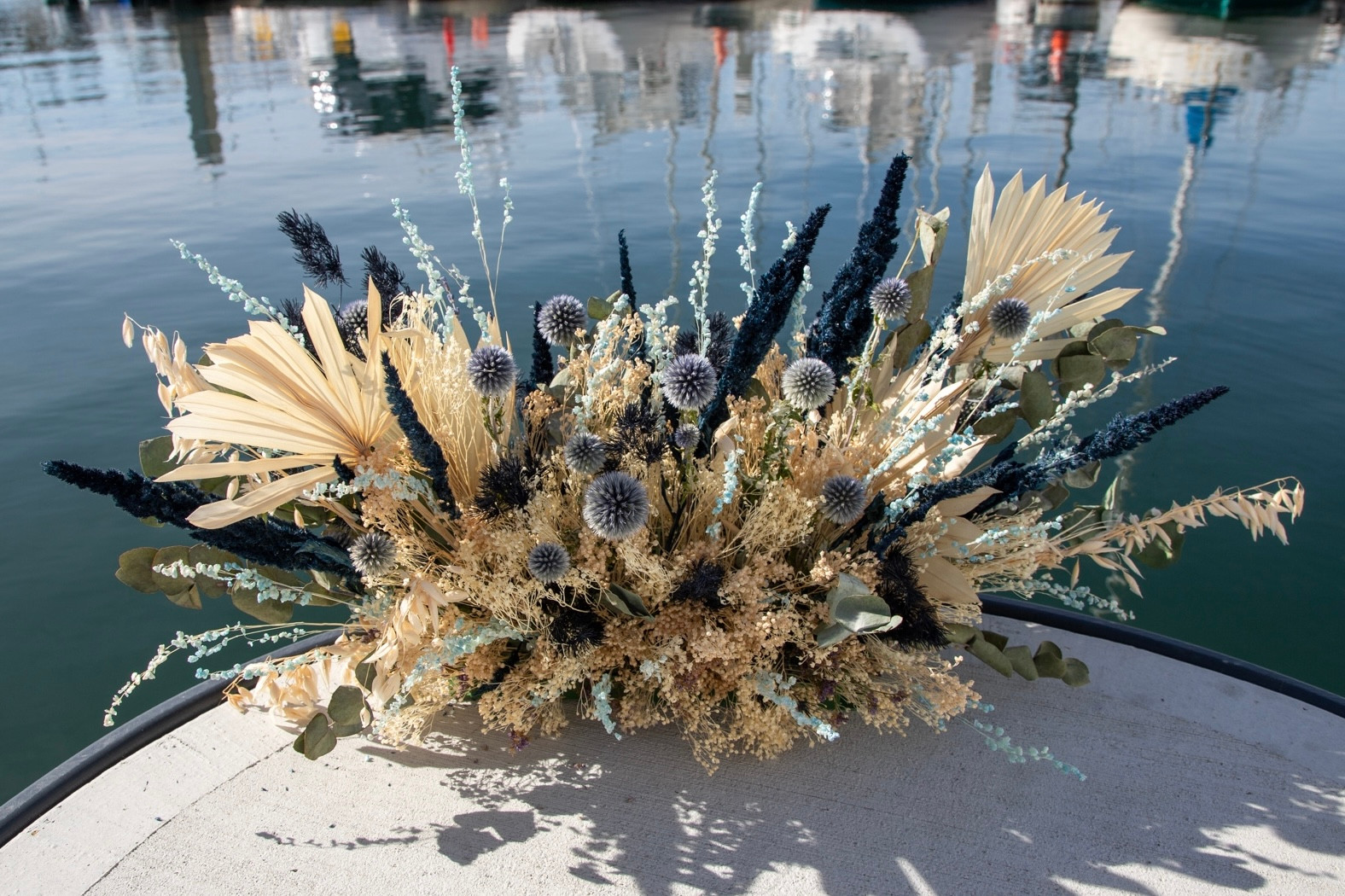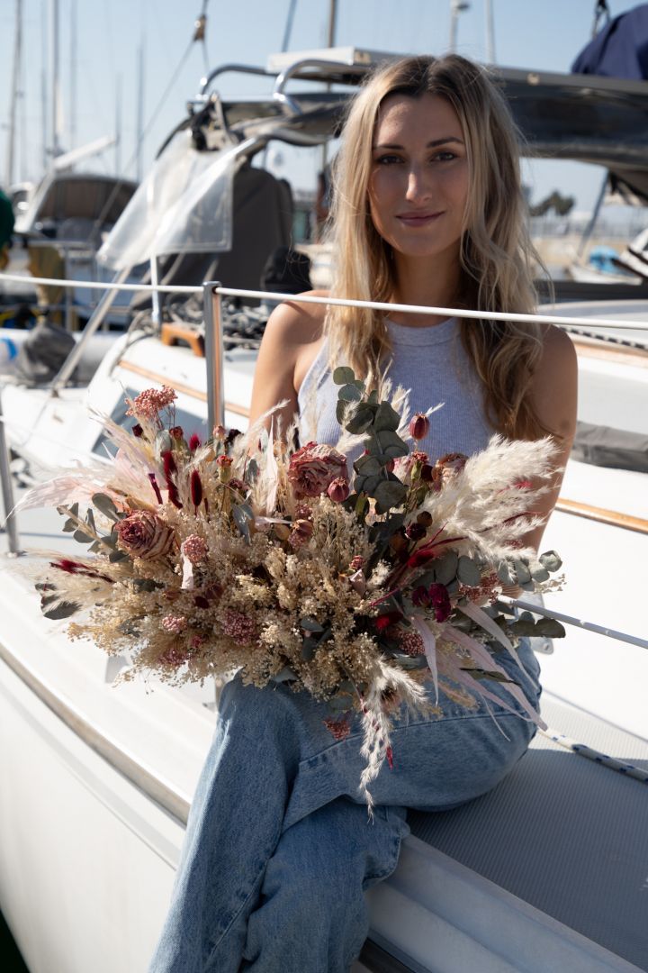Working with dried stems has become a cornerstone of our business model because it allows us to maximize our limited space and adapt to the unpredictable environment on the sailboat. Unlike fresh flowers, dried stems don’t expire quickly, which means we can create beautiful arrangements without worrying about product wastage due to temperature fluctuations.