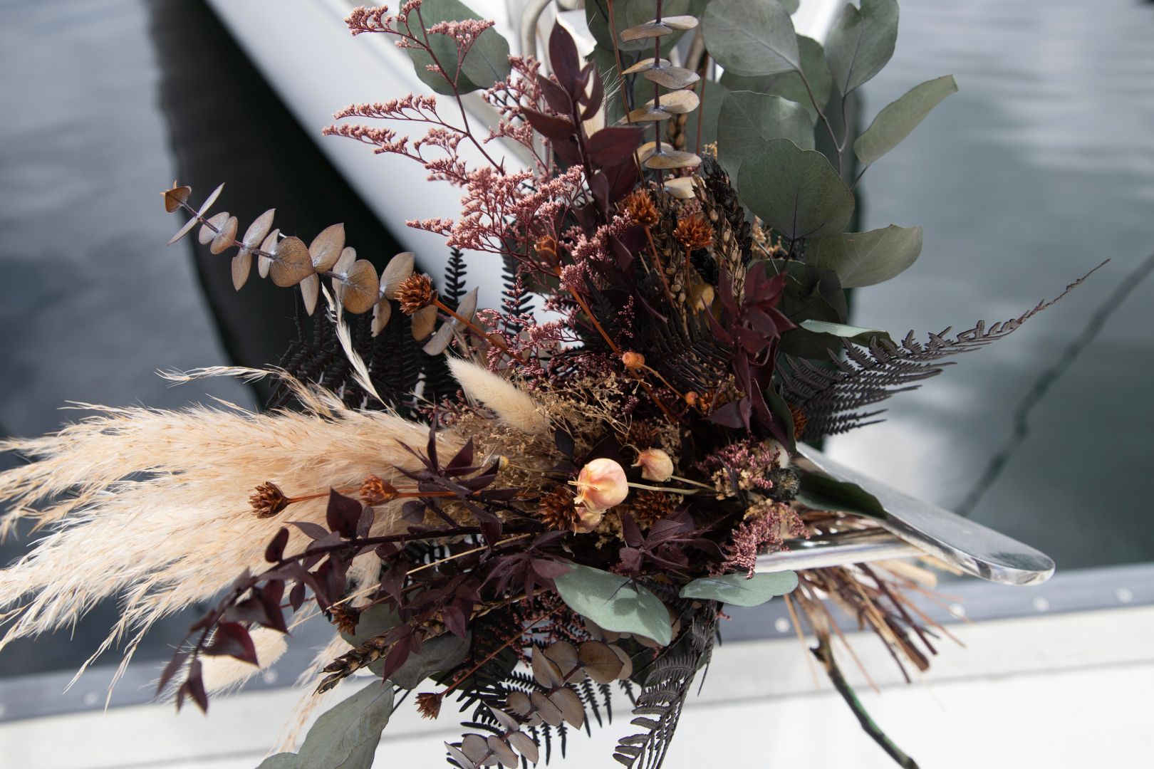 Working with dried stems has become a cornerstone of our business model because it allows us to maximize our limited space and adapt to the unpredictable environment on the sailboat. Unlike fresh flowers, dried stems don’t expire quickly, which means we can create beautiful arrangements without worrying about product wastage due to temperature fluctuations.