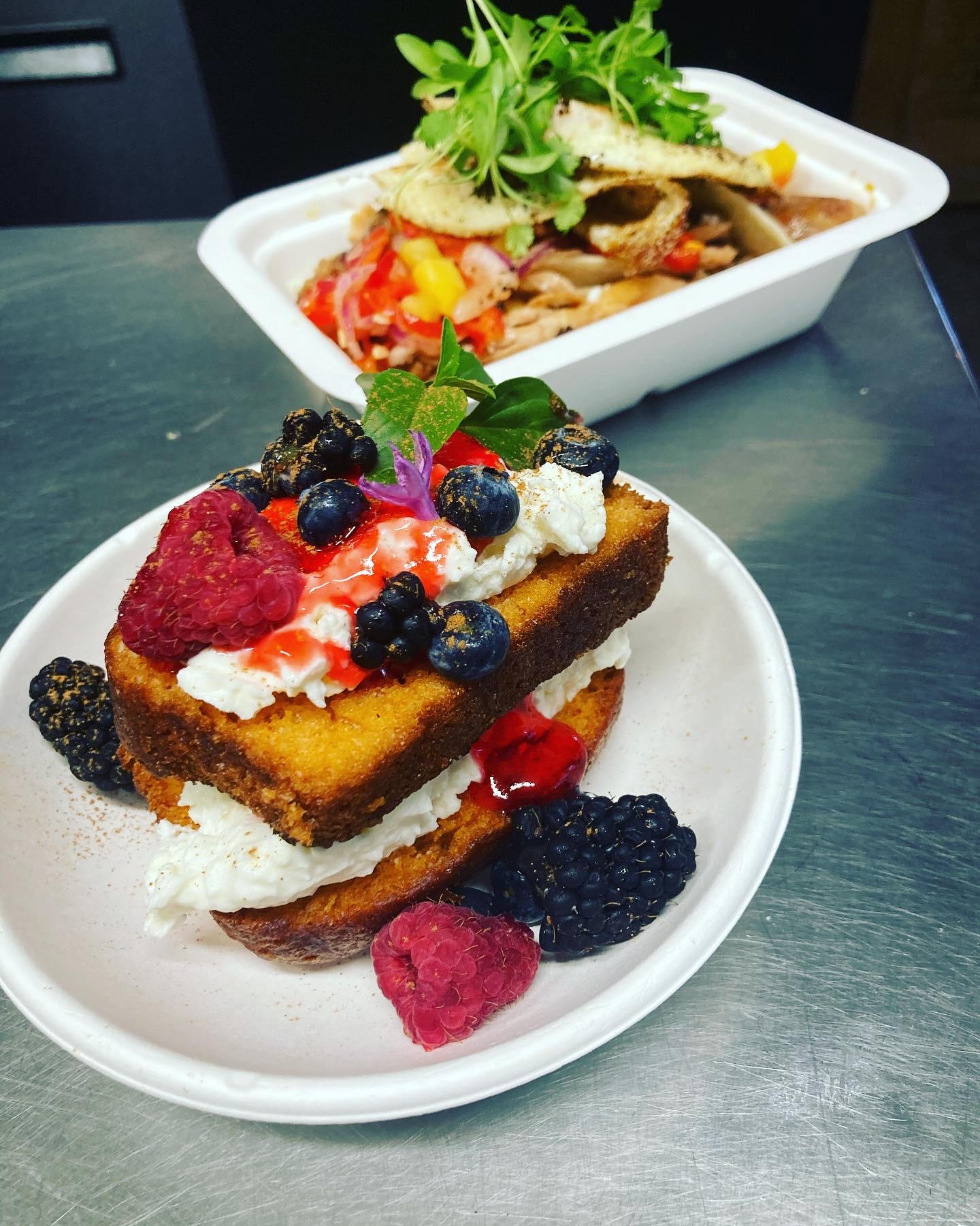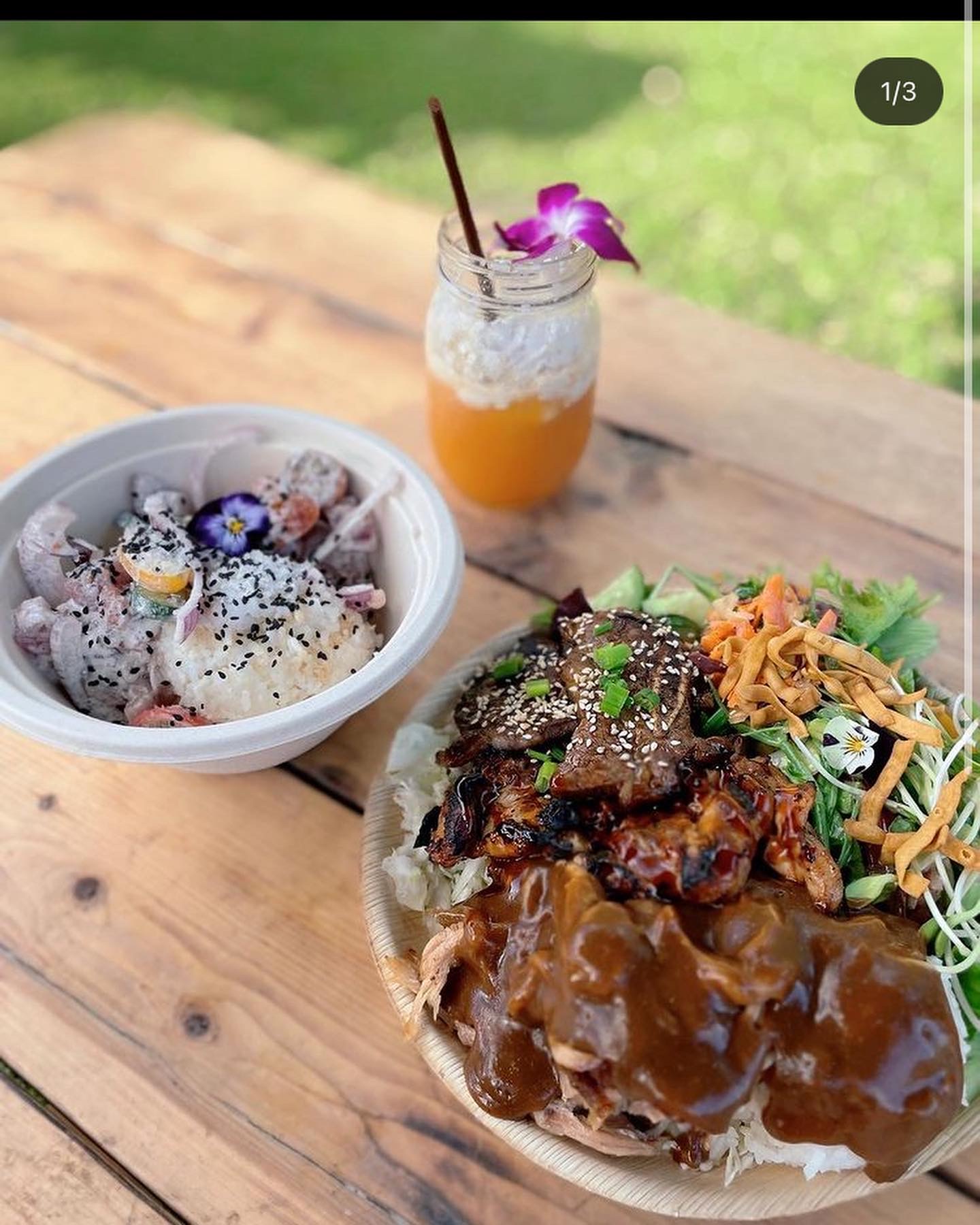 I started working in restaurants when I was 16 years old at a pizza brewery and from there I tackled every position at in house at restaurants that ranged from small mom and pop style to large corporation and prestigious establishments that fed the rich and famous in California and Hawaii. During those 20 years I fell in love with customer service and the idea of making everything dining experience special. When I had the opportunity to manage a restaurant a decade ago, I felt torn between running the restaurant how the owners wanted, and offering my guests the experience I could in-vision for them. It was then I knew I wanted to open my own restaurant that could offer a special experience to every customer, every time. And when it got pregnant with my son in 2019, I decided it was time to open my own spot so I could bring my baby to work with me. I was due in April 2020, I qualified for a small business loan, found an old gas station available for lease and signed the papers March 2020. 2 weeks later Covid shut down the world, but not my dreams. My husband got laid off his heavy equipment job, and as other restaurants were closing their doors, my husband and I began buying kitchen equipment from them and built or restaurant in that old building. My daughters were 10 & 12 years old, and they started an on line Hawaiian immersion school, when we opened our doors to take out, they took the orders, and my husband and I cooked with a newborn baby strapped to my chest.