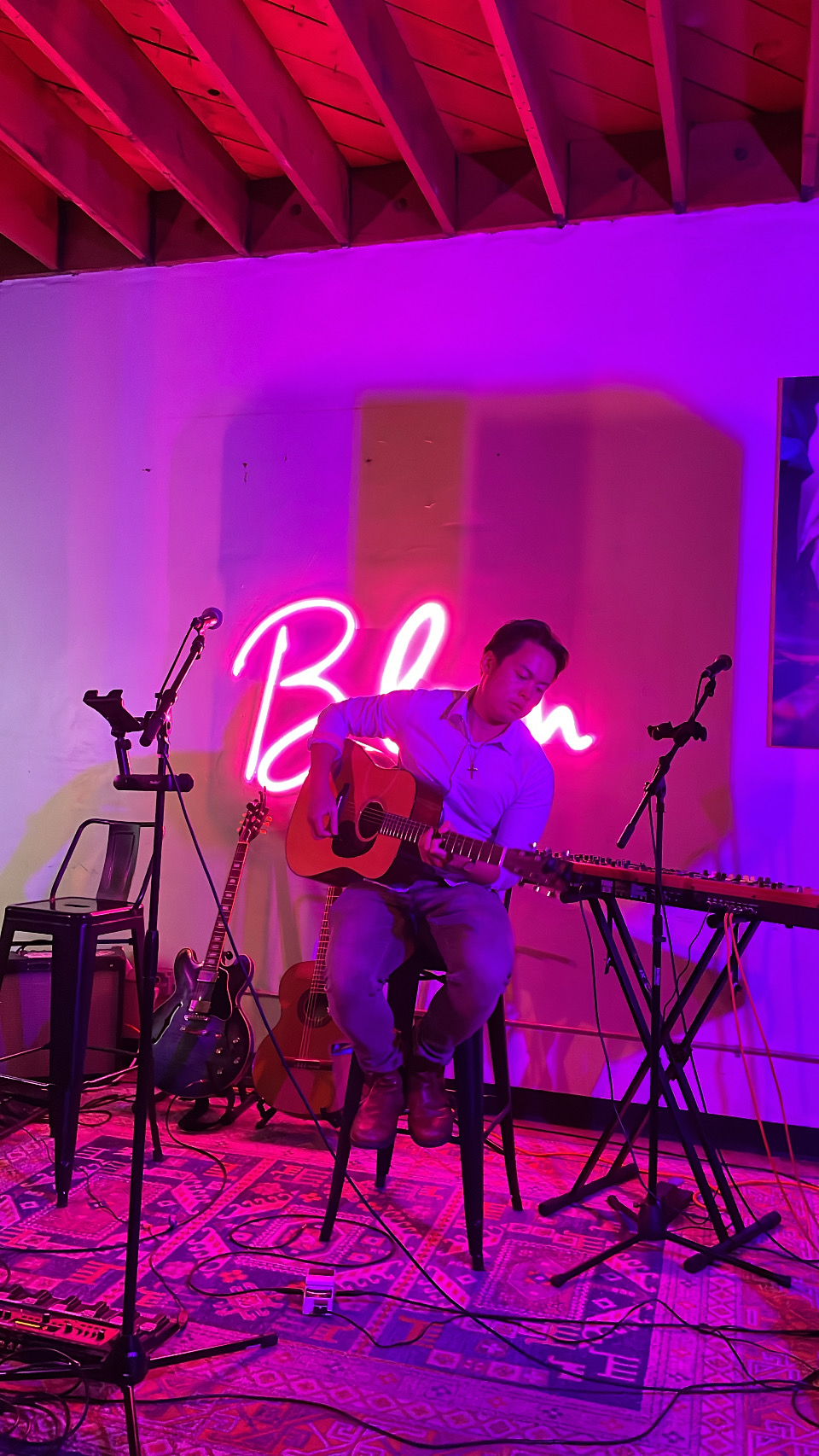 I was a professionally active guitarist from the age of 16, accompanying my Mom (vocalist) in her jazz trios and took on lead guitar duties in several bands and pit orchestras. It wasn’t until my freshman year of college where I finally buckled down and wrote my first song. Even then, I still shy’ed away from the stage and didn’t have the blind confidence that I could sustain my own material, let alone be a “singer-songwriter”. After I graduated college among the death throes of COVID, I decided to uproot everything in my comfort zone and take a risk moving to San Diego with nothing but myself, a fresh econ degree, and a guitar. For the first time, I would be completely away from my loving and supportive family, the safety net of a place where I was already well-connected and set up with a solid job, and all I had previously known. This would be the turning point for my music career as well as my faith.
