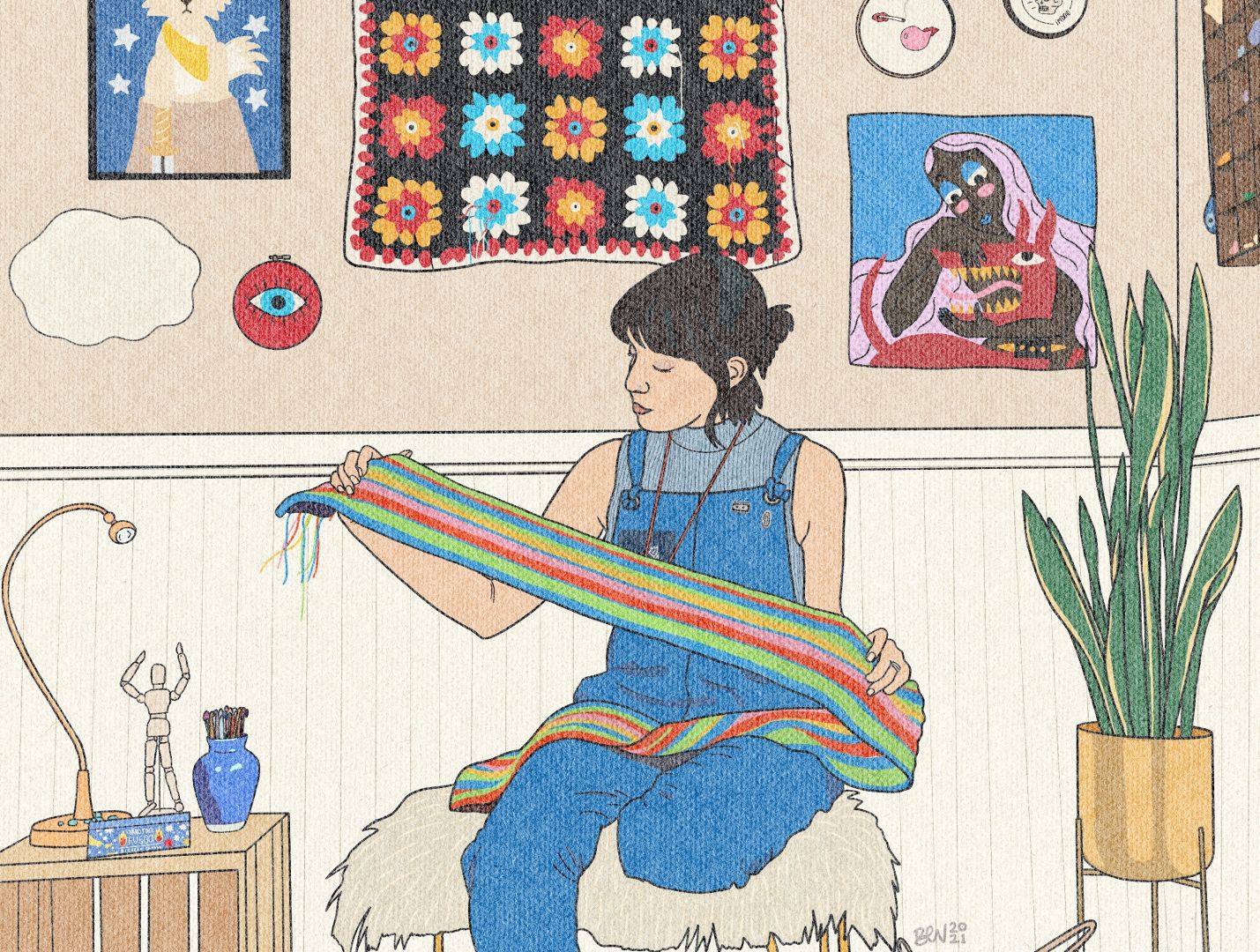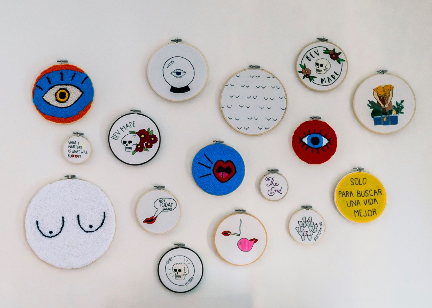 I have always loved working with fiber – fabric, yarn, felt, clothes, whatever. One of the first crafts I truly learned was crochet, which I just learned in my early 20’s via Youtube tutorials when I needed a break from that college life. I fell in love with crocheting my own winter accessories which led me into doing other random DIY fashion-related projects for myself for a while. Soon after, I decided to try my hand at embroidery, because what’s cooler than your own custom embroidered patches and details on your clothes? Right after college, I started working for the county, so adding these unique embroidered touches to my office ensembles made me feel like I could still maintain my identity and showcase my creativity. One of my favorite forms of fiber art I’ve picked up lately is punch needle rug hooking. I learned of it during San Diego Yarn Crawl a few years ago when I saw Christie Beniston of PUNCH! doing a demonstration at A Simpler Time Alpaca Farm in El Cajon. I was immediately enamored and bought a rug hooking kit at the next stop on my crawl. With this craft, I’ve created patches for clothing, wall hangings, placemats, portrait pillows, and have so much more planned for the future. When it comes to illustration, I’ve always been a chronic doodler, but only really took myself seriously in the past year. I could acknowledge that I was good at churning out simple doodles of lips, leaves, and letters, but I always told myself anything beyond that was too difficult. My husband, Omar, was the one to snap me out of that small mindset and remind me that my talent only spans as far as my self-image will allow. While I’m still shy at defining myself as an illustrator, it is what I do. I try to practice illustrating every day, whether it’s digital or analog. When I’m struggling for inspiration, one of my favorite practices is to illustrate a photo received from a friend because they wanted me to see something cool, or they were feeling cute so they took a selfie, or they caught their cat at the perfect angle to make her look like a demon. It makes me laugh to draw the sillier photos and makes me feel all warm and fuzzy to draw the more meaningful ones. When I’m drawing from photos of people, it feels like an act of love, spending so much time and energy studying the lines of their face and the curvature of their body and making sure each stroke of the pencil is justified by their character. It’s important to me that if/when they see my illustrated interpretation of them, they are seeing a version of themselves that makes them excited to be who they are, just as I’m excited to know them as they are. Staying out of that small mindset is still a daily struggle, especially with social media being a normalized part of everyday life, even more so for creative businesspeople. One of my biggest challenges is actually using social media to my advantage in my business and general creative networking. Speaking to my audience through a photo that I take, edit, caption, and send off into the matrix isn’t intuitive or ideal for me. This is where the small mindset starts creeping back in. Feeling inadequate online, where my presence and interactions are vital to growing my business, immediately leads to the c-word: comparison. Comparison is the killer of creativity. As soon as I start scrolling, it takes all of my mental energy to keep from comparing my work, my followers, my will to live with so many other amazing artists and full time small business owners. The more I scroll, the sadder I get and suddenly the pride I once had in my latest post is pocket-sized. Trying to stay relevant while keeping my eyes on my own paper is obscenely challenging, but I also try to acknowledge how much I’ve learned and how far I’ve come in the years since deciding to become an entrepreneur. BEV.MADE was born in a panic one rainy night in April of 2016 when I found out one of my best friends/bonus dad was given a few weeks to live. I always shared my crafts with him and he’d tell me how much skill and patience it must take to make such a thing. I could have wrapped yarn around a rock and he’d be amazed. He encouraged me to market my craft, and I would talk endlessly about my future small business that would undoubtedly free me from the monotony of a 9-5 job. I was all talk until he was dying. So I quickly opened an Etsy shop and filled it with products I felt very half-heartedly about. I just made things I thought people would buy. (Spoiler: People didn’t buy them.) He died a month later seeing me as a small business owner and artist, but I was left lost. My business didn’t thrive and I didn’t understand why. To this day, I am still discovering what I want my business to be and the best way for me to make it so, but now I create from the heart for people who share the same interests, insecurities, and mental illnesses as me. It’s hard to not look at my number of followers or sales and feel like it’s not enough and think it means that I’m not enough, but it becomes easier to ignore these thoughts when I remember how empowered and ecstatic my art makes me feel. Maintaining a mindset fit for a queen is reliant on appreciating the moments when creating itself brings me joy or when a friend rocks one of my beanies out in the wild. I try not to let comparison kill my creativity anymore – it’s too valuable to lose. I honestly could not have learned these lessons in the time that I did without accessing my intuition. You know when you have a “gut feeling” about a thing you’re doing or you’re immediately creeped out by someone who seems like a creep? That’s your intuition screaming at you, and only recently did I learn to actually listen to mine. I started reading tarot cards a few years ago when my friend, Lara, read my cards for the first time. Once I understood how much a tarot practice can open the mind and challenge the soul, I was hooked. Since then, I’ve begu