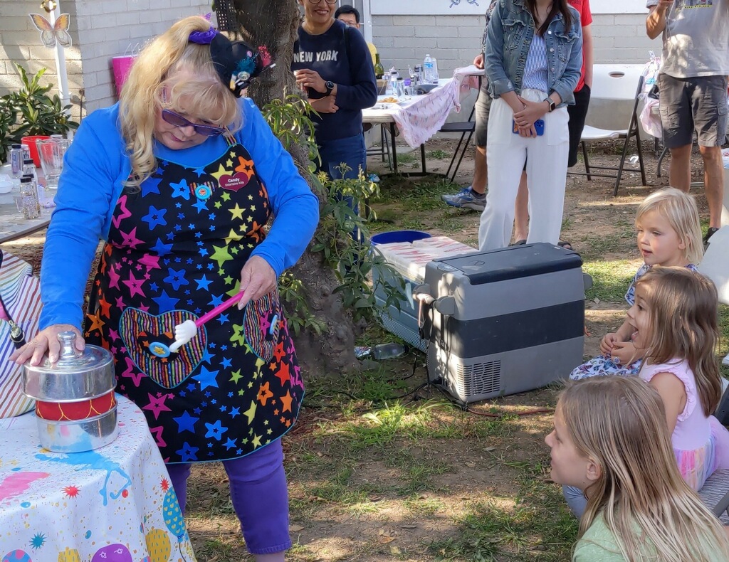 I started doing clown work in 1993 and it took several years to promote myself. There have been ups and downs including the clown scare several years ago that had people not wanting to use clowns for a while. This was hard on the clown community and so I had to think outside the box. I decided to create Candy Entertains Kids, where instead of clown make up I would come cutely dressed for the occasion just not as a clown. This seemed to do the trick! Even so, I still do Butterscotch the Clown when asked for her.