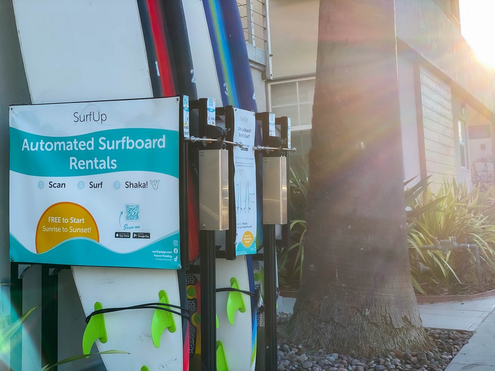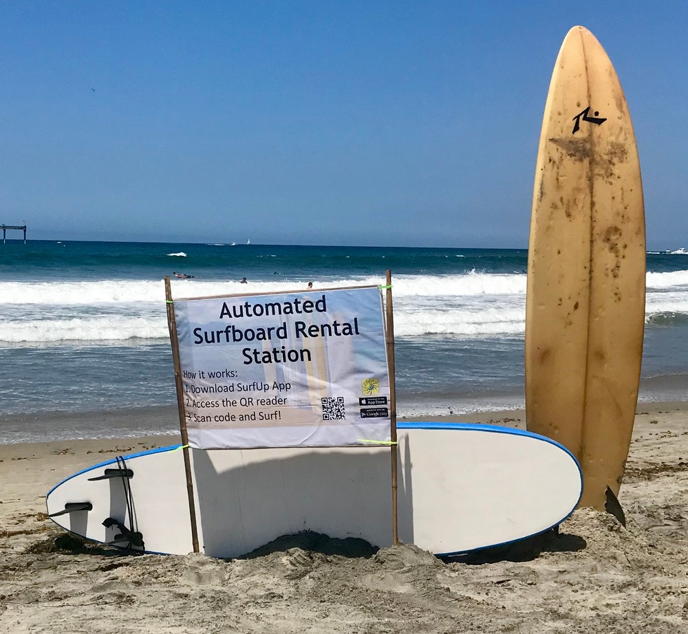 Fast forward to today and SurfUp’s SurfPods are no–contact, no-hassle, automated surfboard rental stations. Picture yourself walking down Diamond Street in Pacific Beach. You and your friends are on your way to the water for a casual beach day and up ahead, next to the sidewalk, you see surfboards in a metal rack. As you get closer, you see QR codes next to each board, and a sign with a headline that reads “Life’s a beach, so let’s surf.” While your friends are busy reading the sign, you download the SurfUp app, scan the QR code, and unlock your surfboard. And just like that, you transformed the casual beach day into a memorable story.