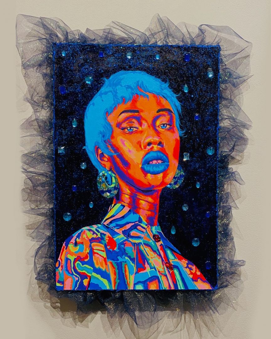 Most of my work is about personifying the “black experience” through figurative paintings, and the black experience to me is the expectation to be treated a certain way. Lately I have been talking about the ideas of Afro-futurism and what that looks like to me. I think what sets me apart from others is my sense of materiality, color, and how I represent the figures in my paintings.
