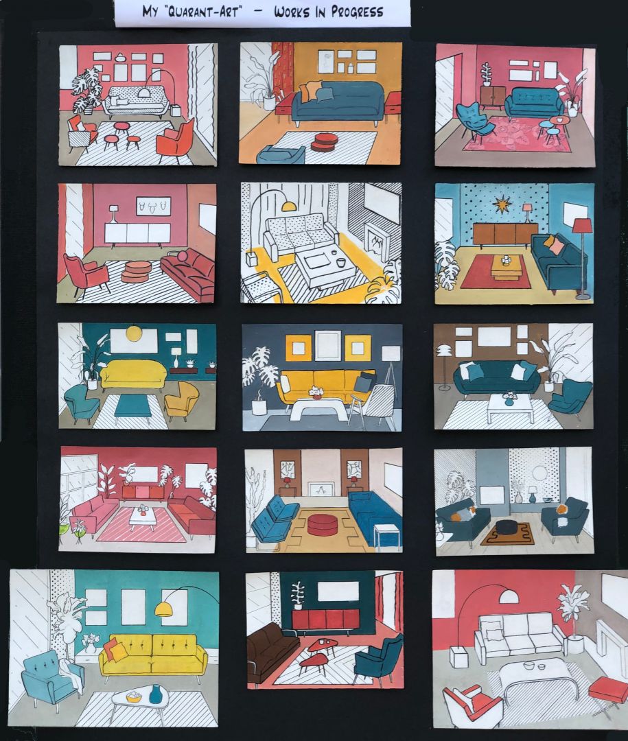 I like to work on many different subjects, influenced by the happenings around me. For example, in springtime, I usually have a period when I paint expressive flowers; or during the first months of Covid19 isolation, being indoor, in the small home studio I was painting some whimsical miniature interiors, colorful retro design, inspired by Roy Lichtenstein and Wes Anderson’s cinematography, probably to complement for more color and fun in our lives. And as much as I like to try different subjects and mediums, I always find myself back with my most favorite subject, people. Figures and portraits, they are always with me. I’m eternally intrigued by people, our relations, connections, emotions… Last year I had a solo exhibition “Exploring the mind and soul of the human face”. It started as a series of portraits, exploring different techniques, looking for more expressive ways. While working on them, I started thinking about our emotions and the way we express them or not, and the idea came to explore that concept further, and make the portraits all about that. It ended up, with each portrait having two titles, both based on the songs that reminded me of (or influenced) the painting, where the first title was about what each of us chooses to show to the world, or how we want to be seen, and the second title about who we are when nobody is around. The visitors were supposed to choose which title they prefer or add their own. It was an interesting and engaging experience.