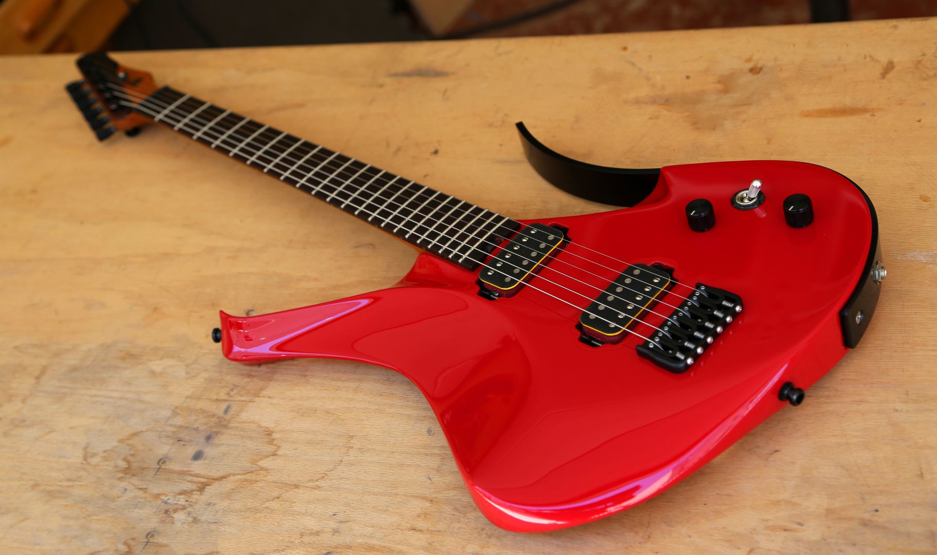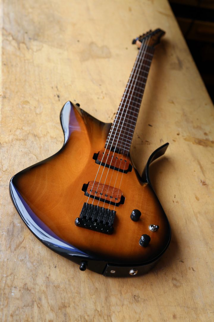 What sets my work apart from most of my peers in the guitar business are my unique modern ergonomic designs. I don’t think I can express how proud I am to give something different to the guitar world, something that is fresh and has no ghosts of the past on it. A huge reason I have any success professionally today is that for good or bad my work turns heads, I always get players saying ” what the heck is that? “. A lot of guitar builders choose to copy or do offshoots of the classic designs from 50-plus years ago, and not that this is a bad thing those classics inspire millions of players every day… But that never attracted me as much as it did others, I wanted something different something that had some modern innovations applied.