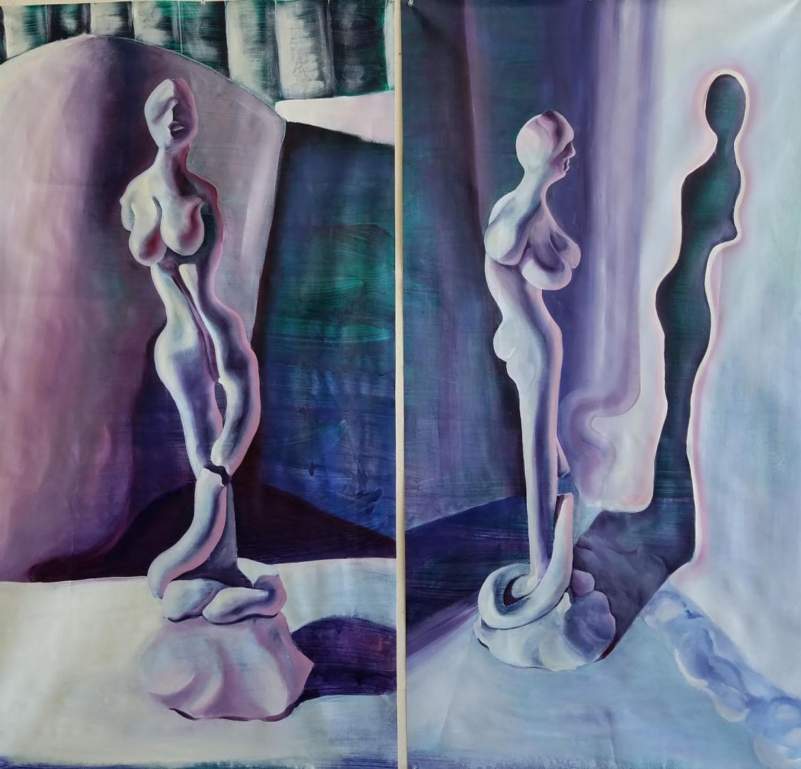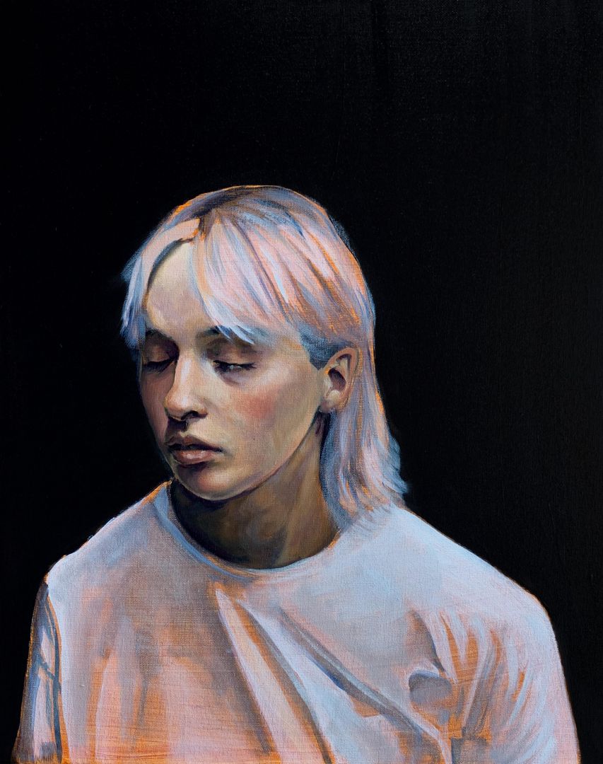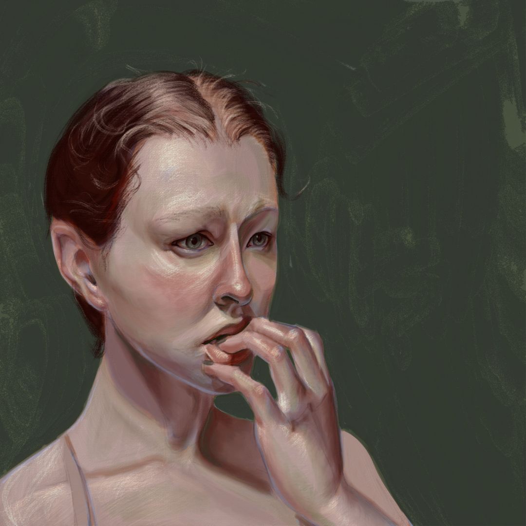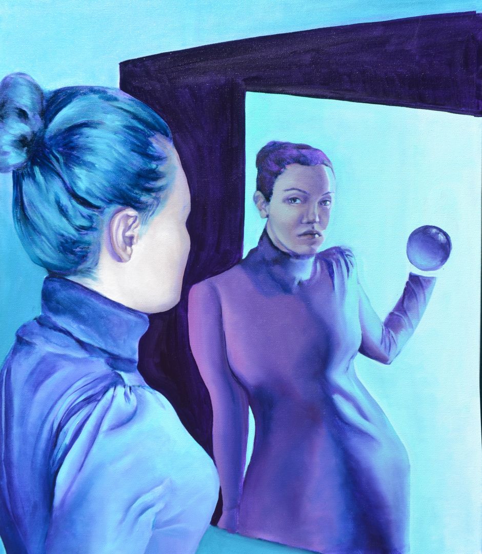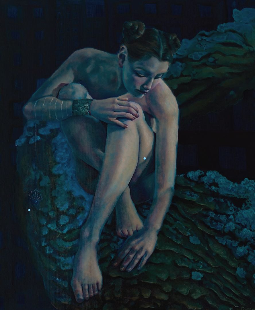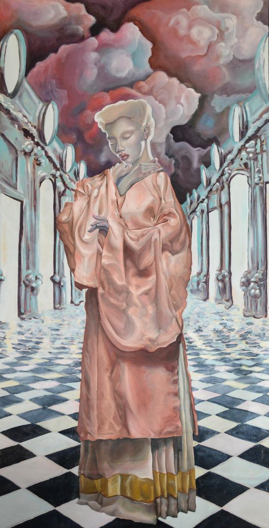 I am primarily an oil painter, but I have recently branched out into digital art. For the longest time, I was reluctant to try it out, but since I did, I have come to appreciate its advantages, and I have had a lot of fun working that way. I generally describe my work as surrealist, because I draw a lot of my ideas from dreams and intuitive drawing. I am interested in the subconscious and how viewers interpret my mindscapes. My preferred subject is the human figure, and I mostly depict female characters because that reflects my personal experiences. I try to portray power in femininity, and to create female subjects who are dignified but not necessarily somber, at once relatable and enigmatic. I pursue the beauty of stillness, melancholy, and contemplation; my palette is predominantly cool, and I like to describe my work as being, musically speaking, on the minor scales. I am personally drawn to things that are eerie yet captivating, and I try to incorporate that into my pieces. Combined with a refined aesthetic sense, careful world-building, and a fantastical sensibility, this aspect creates an interstice where things and characters are at once beautiful and bizarre, immaculate but ever so slightly off-kilter. They exist as a statement in themselves, but also as a question to the viewer.