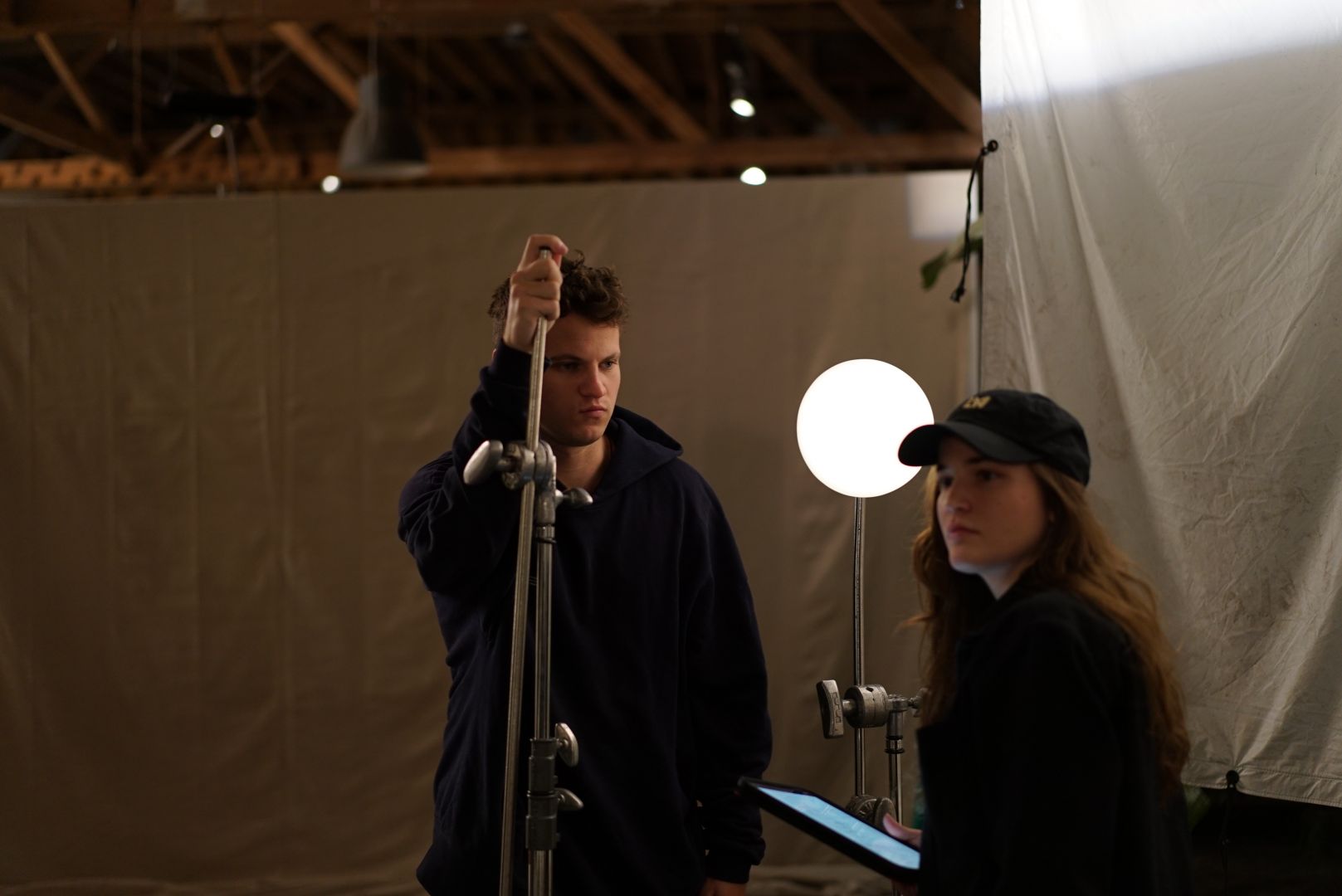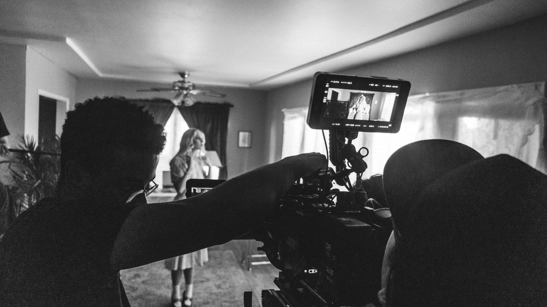 Image 1 (black and white Dmitriy on set of “The Eclipse”) – Photo credit: Will Bonnell Image 2 (Still from “The Eclipse”) – Cinematography credit: Tom Bolles Image 3 (BTS photo on the beach from the film set of “City of Sand) – Photo Credit: Finn Sanders Image 4 (Still from “Project Romeo”) – Cinematography credit: Simon Moore Image 5 (Film festival photo) – Photo Credit: LAGFF Image 6 (BTS picture with Taylor Garcia from the film set of “Penny’s Gallery”) – Photo Credit: Connor Ewart Image 7 (Black and white BTS from the set of “The Eclipse”) – Photo Credit: Myles Dement