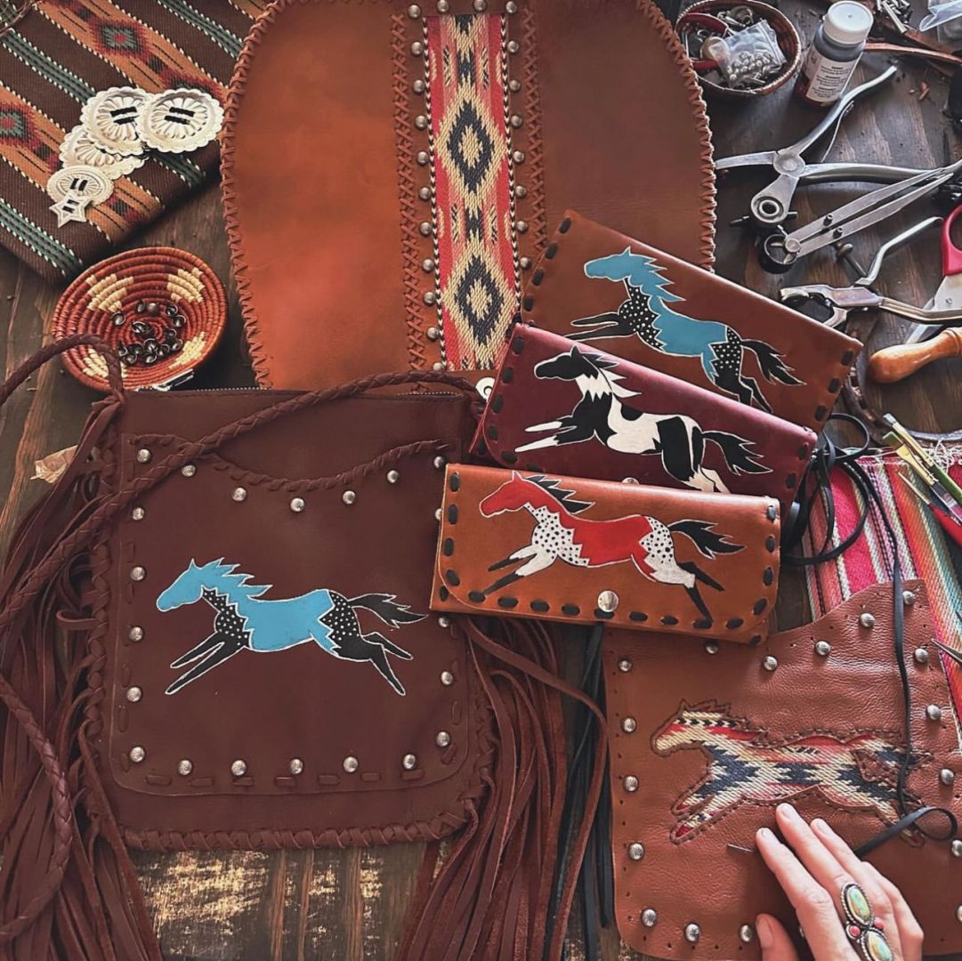 I started Black Wolff Leather to bring my ideas to life and share them with those who love one of a kind, leather bags and accessories. Everything I make is made by hand, from cutting, painting, sewing- even the fringe! I started out by doing small shows and markets and moved on to selling to some local shops and online. It can be very challenging to keep up with sales and creating new products, because my shop is made to order and I am a just a one woman show. My biggest struggle was starting over when I lost my instagram account a couple years ago, but little by little I just keep at it because I am passionate about my work. I love seeing people wear my brand, it keeps me going. I give back whenever I can, supporting the rodeo community.