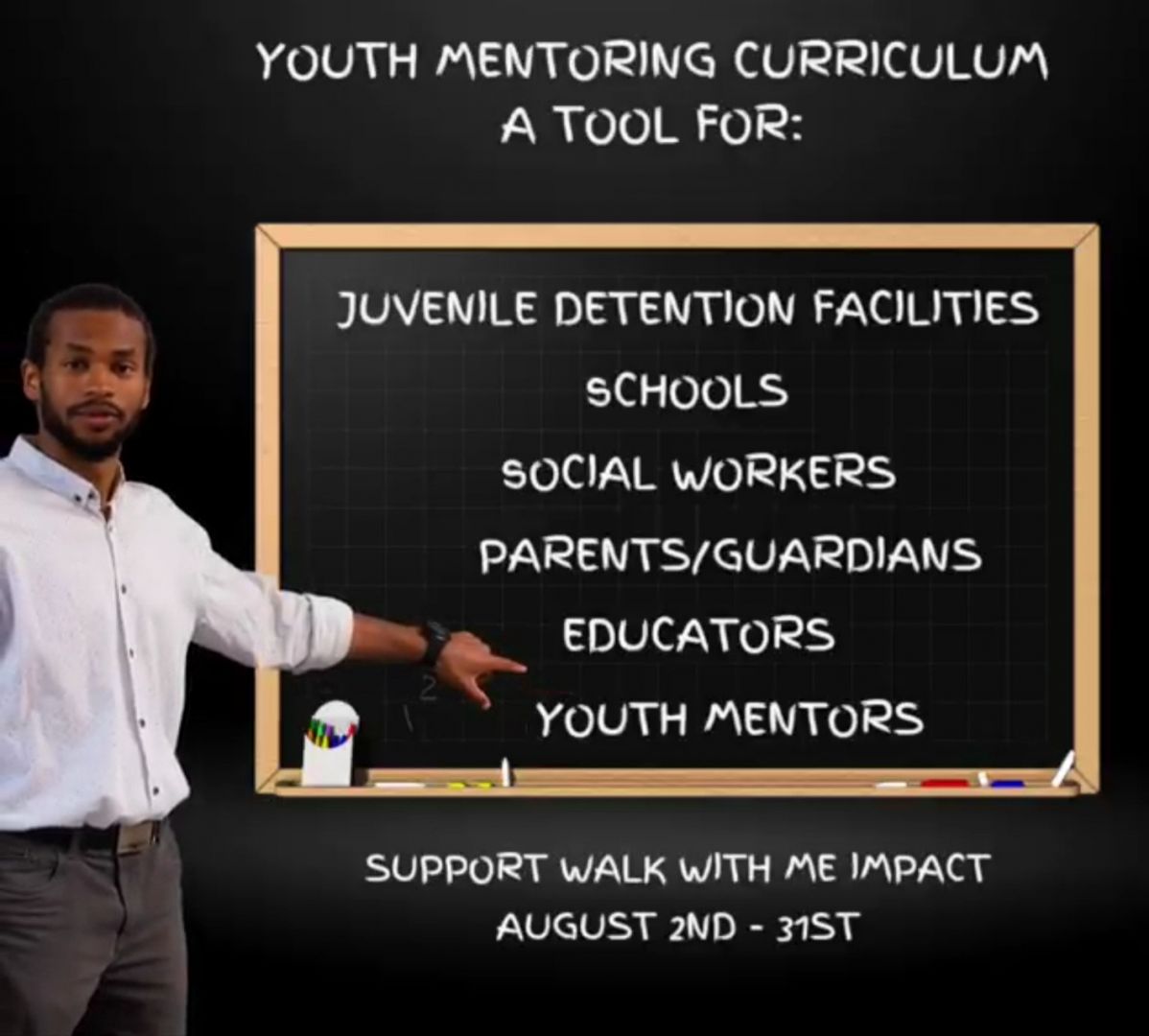 One of my partners, Armand King, has been working in the community for over 12 years. He co-founded a successful non-profit, Paving Great Futures. His life experiences and community involvement led him to starting a new youth mentoring curriculum called Walk With Me Impact. Once Armand I started talking about the many creative ideas he was working on, including Walk With Me Impact, I knew this was a great opportunity to be a part of something that will add value to our youth and community.