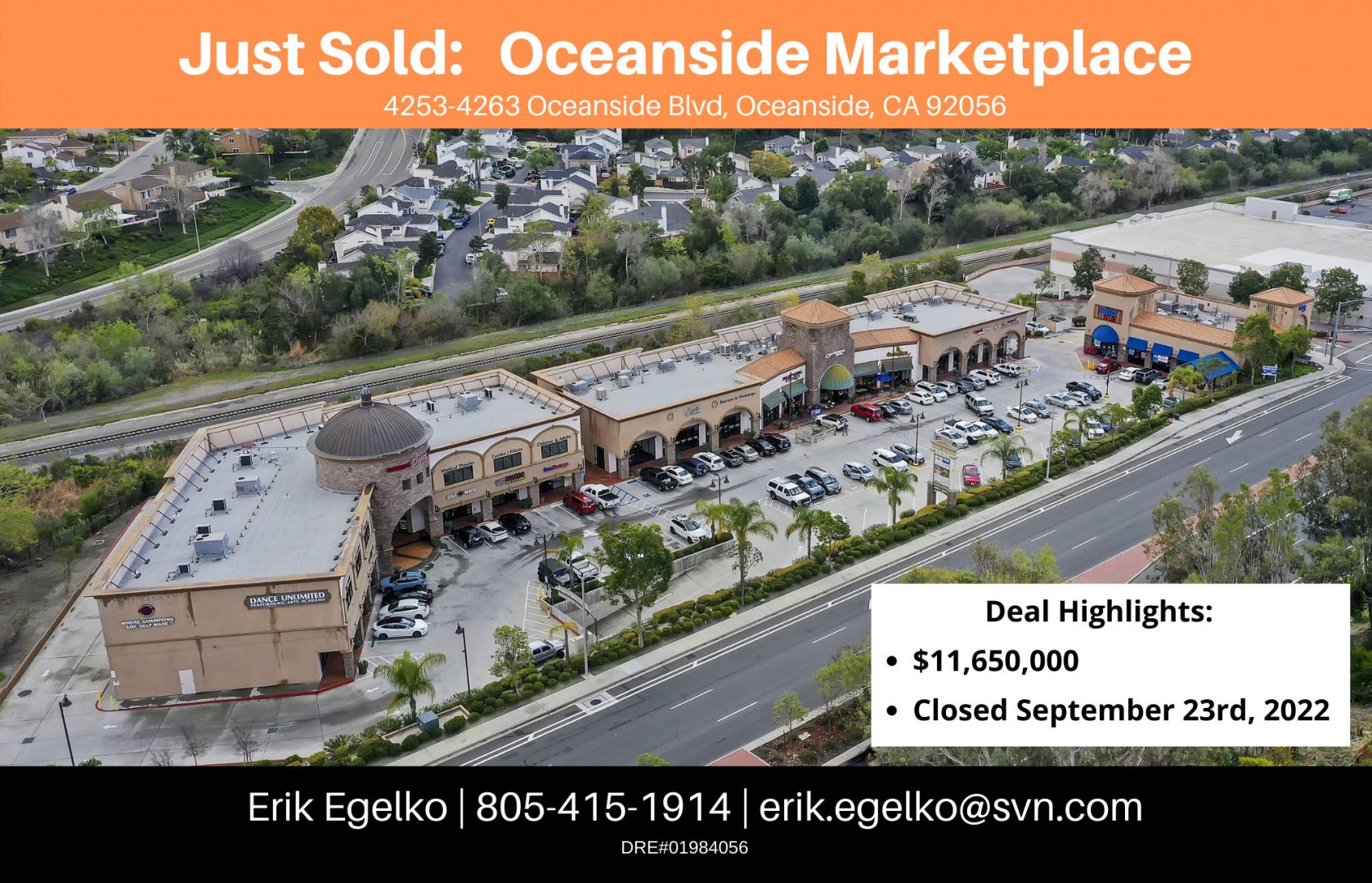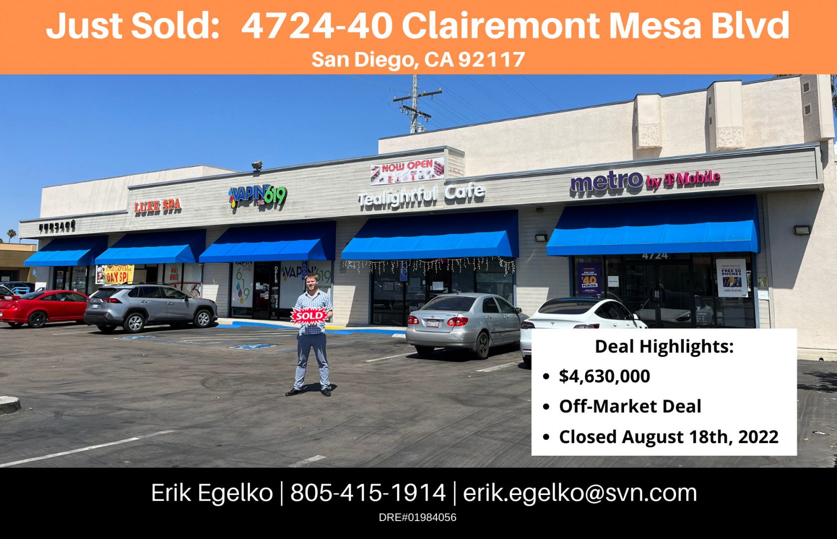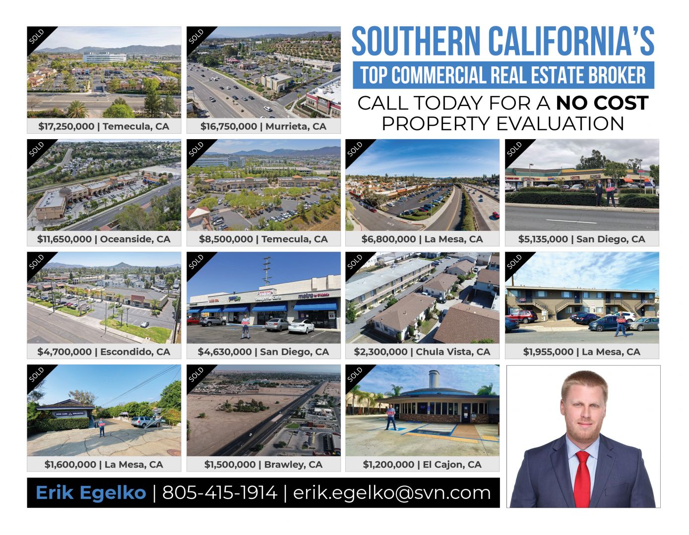 I am a commercial real estate broker with a specialized focus on shopping centers in the Southern California region. In 2022 I closed over $75 million in private capital transactions and was ranked as the #1 broker in the state for my firm.