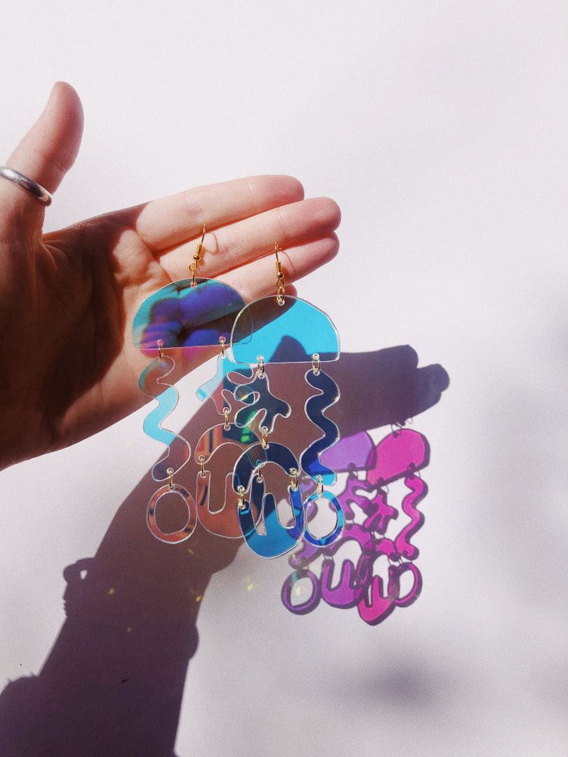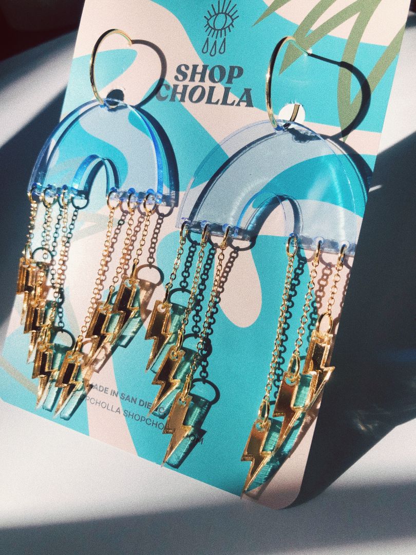 My jewelry is definitely big, bright, and colorful, and that was the intention behind starting Shop Cholla. Since the beginning, I’ve made it a priority to make really interesting jewelry that you can wear all of the time, and not have to save up for a pair that you really want. If I had to choose one thing that I am most proud of, it would be that my brand has become recognizable to the point where people will message me saying that they met someone else in their city wearing Shop Cholla’s and they had a bonding moment over it! That is hands down one of the coolest things that I will never get tired of hearing! Quite frankly, there have been many really difficult parts of my journey with Shop Cholla, and mama didn’t raise a quitter, so I absolutely am where I am because of tenacity, and just the sheer will to survive, and not fail! Something that I’m proud of myself for, as a business owner, is that I am looking to grow my business intentionally, and thoughtfully. About 6+ months ago, I finally invested in a laser cutter, last month I expanded into an apparel line, next month I will be introducing a wholesale arm of my business where my clientele can shop other small makers – for me, measured growth is the key to stable success, and I am always laser focused on how to create and maintain a sustainable brand for me to work on forever! The biggest thing I want someone to know about Shop Cholla, is that I am just a 27 year old woman making cool jewelry, and looking to get people excited about wearing my art – my brand is fun, relatable, and 100% me.