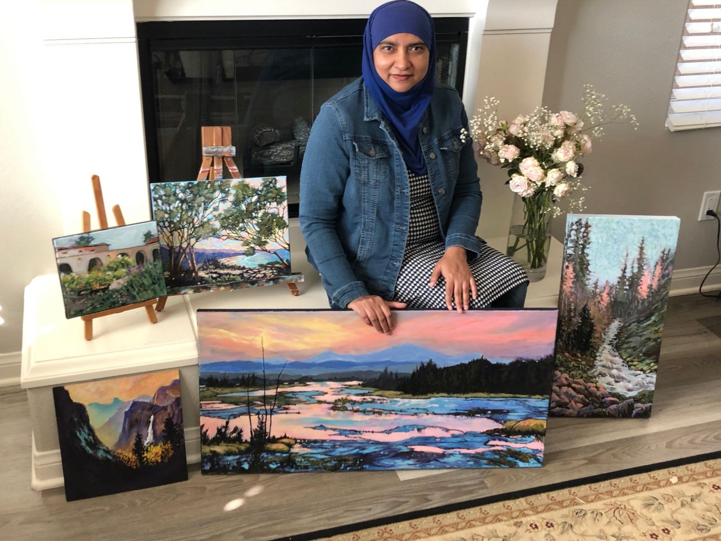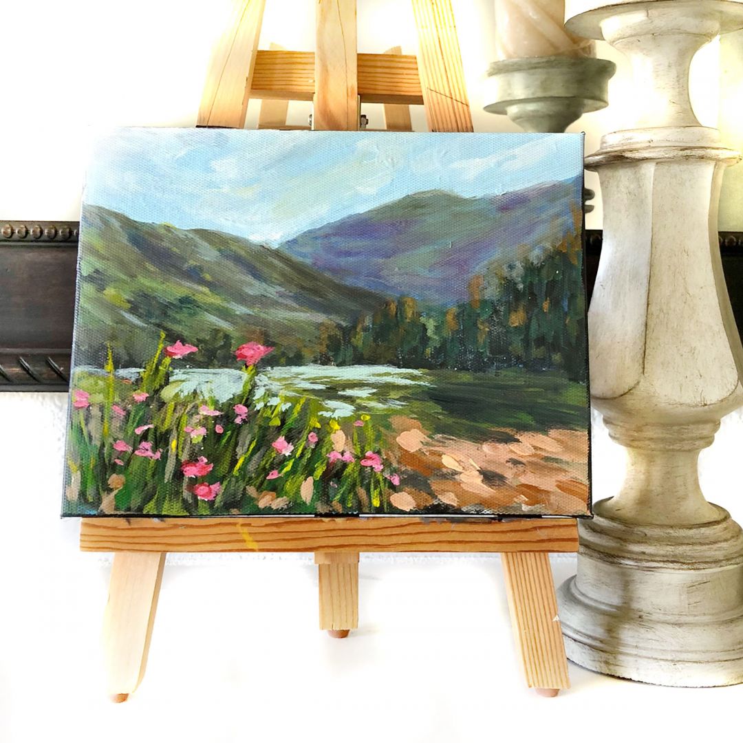 I started painting 20 years ago when watching the KPBS program following artist Bob Ross sparked a deep desire in me to give painting a try. I bought his oil painting set and borrowed a few books from the library and started teaching myself to paint. I indulged in oil painting for about two years, not as a regular practice but rather sporadically. I loved painting landscapes and it made me feel that this is what I was meant to do and some kind of latent urge to create paintings became a prominent thing in my life.