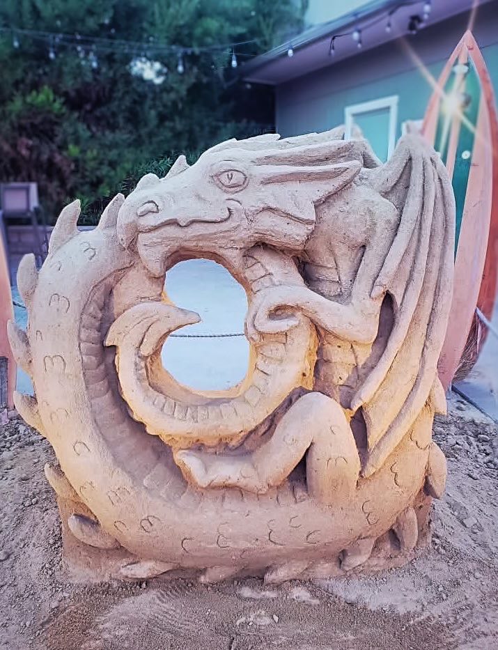 I’m a sand sculptor, which is a bit like being an artist, a beach bum, and a magician all rolled into one. My medium is temporary, tidal, and largely unforgiving–but that’s part of what makes it so magical. I started out just playing in the sand, then busking on the weekends with a shovel and a dream, and over the years I’ve slowly built my passion into a joyful full-time career (sunburns and sandy crevices notwithstanding).