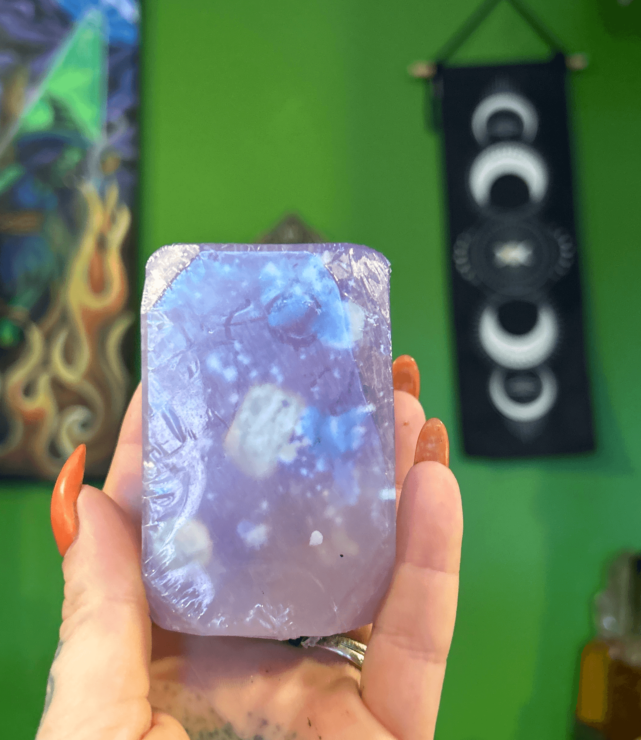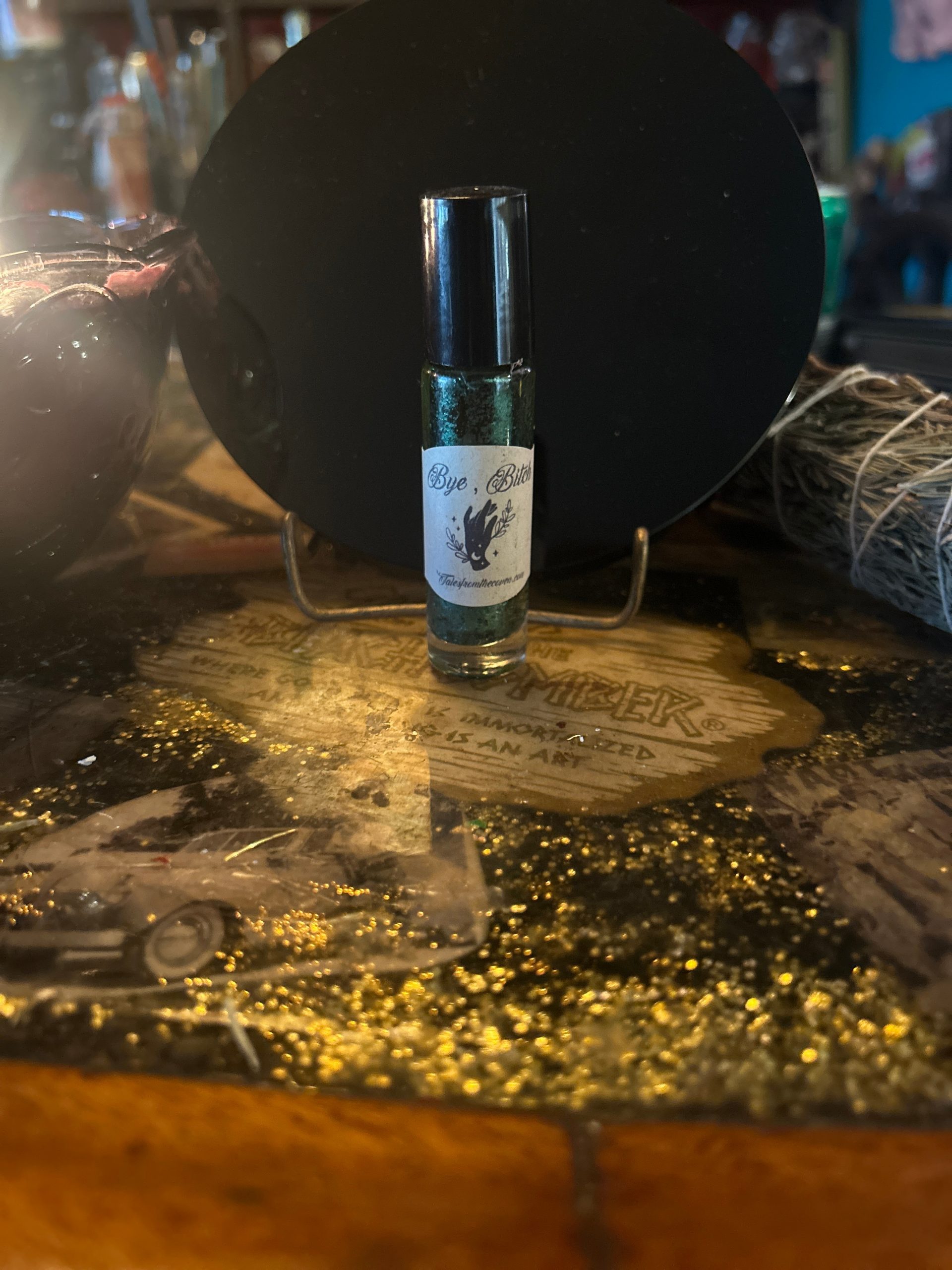 It was actually a dream of mine when I was a teenager. To be able to own a witchy store and to be able to teach and give back to the community. But life took a different course and I became a tattoo artist. I’ve been a tattoo artist for 30 years now. A couple years ago, though everything came full circle. My husband and my children were really encouraging me to start selling the things that I have been normally just making such as a candles, incense, bundles, oils, jewelry, etc. and it took a while for them to convince me that that would be a good idea. But then I took on the task of starting the website, the Instagram, etc. and it’s just grown and grown, which is amazing. The sense of community and the amazing people that I have met is my favorite part. We do live sales through Instagram. We do vending ,we have the website and we also do our magic tattoos, which brings both businesses together. Our website is www.talesfromthecoven.com. You can also find our podcast on the website. Our podcast is all about teaching, learning and sharing witchy insights.