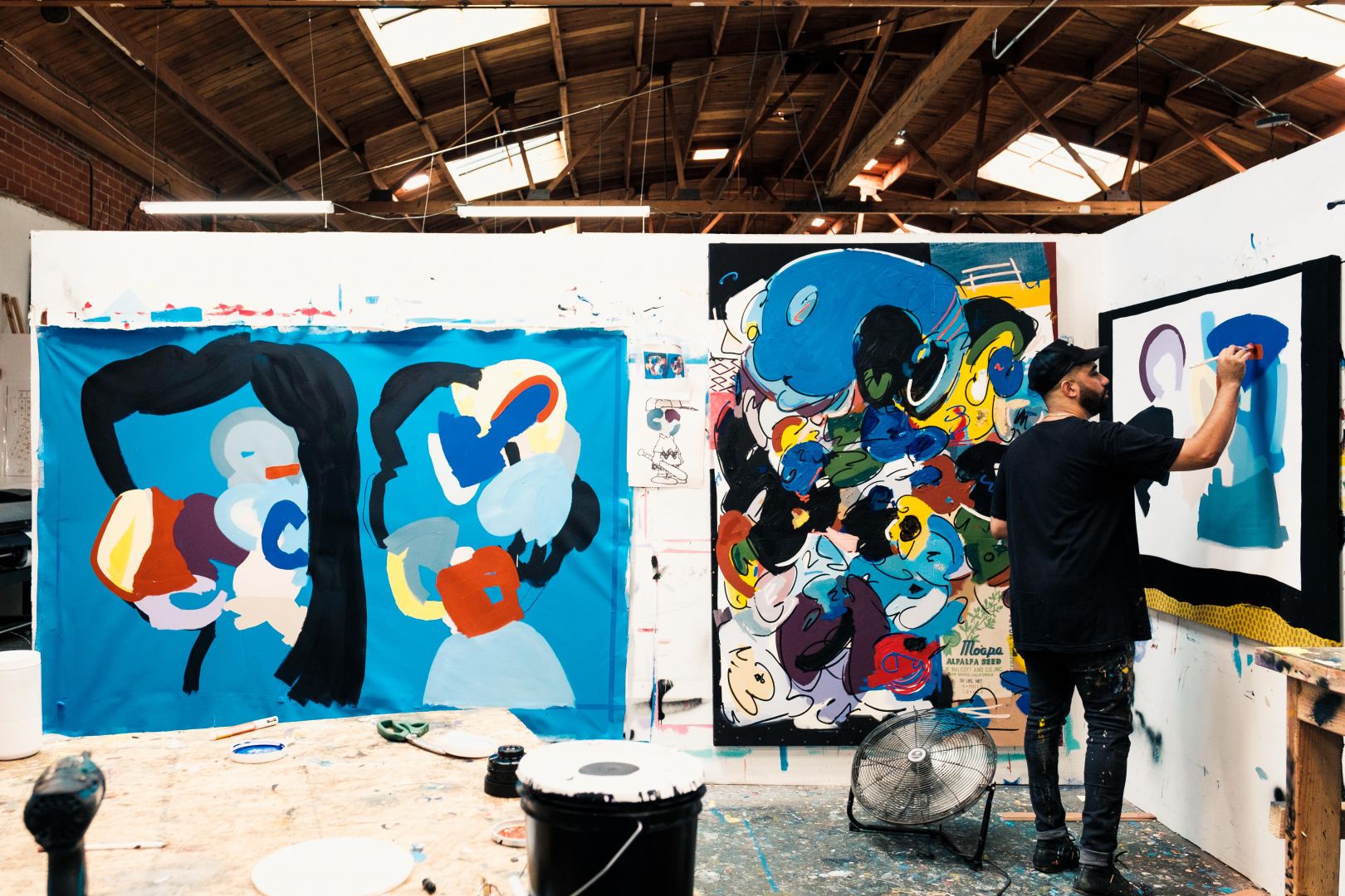 I am an abstract painter based in Los Angeles. I think some of this came be answered in my answer about balance, as far as less is more, supply and demand, etc… but I’ve been able to paint full-time since 2015 and to be honest, my career has kind of been made by being in the right place at the right time and working like a mad man. Maybe this is the imposter syndrome in me, but I feel like I had to the backdoor into the art world because I’m a mostly self-taught painter. I went to film school instead, which I hated. Film school kind of ruined film for me. I love art, I love everything about it, but I didn’t want school to ruin it for me, so I didn’t go pursue a degree in painting. I’m happy about that. I think my work ethic and desire to push myself to be a better painter is one thing that sets me apart from some artists. The other thing is that no one has the same story as me and I am excited that I get to constantly explore my race, cultural economical upbringing and humor into my work. It is true that “making it” in the art world is easier if you have an MFA from a good school, but I get to tell my story and invite viewers into it. I had a few harsh experiences with collectors and dealers who liked my work, but felt that because of my lack of education I wouldn’t carve out a career for myself. There was one incident in particular that rattled me and in turn pushed me harder to find my way into galleries and strong collections. To be honest, I wouldn’t have it any other way. I’m where I want to be, working with who I want to be working with.
