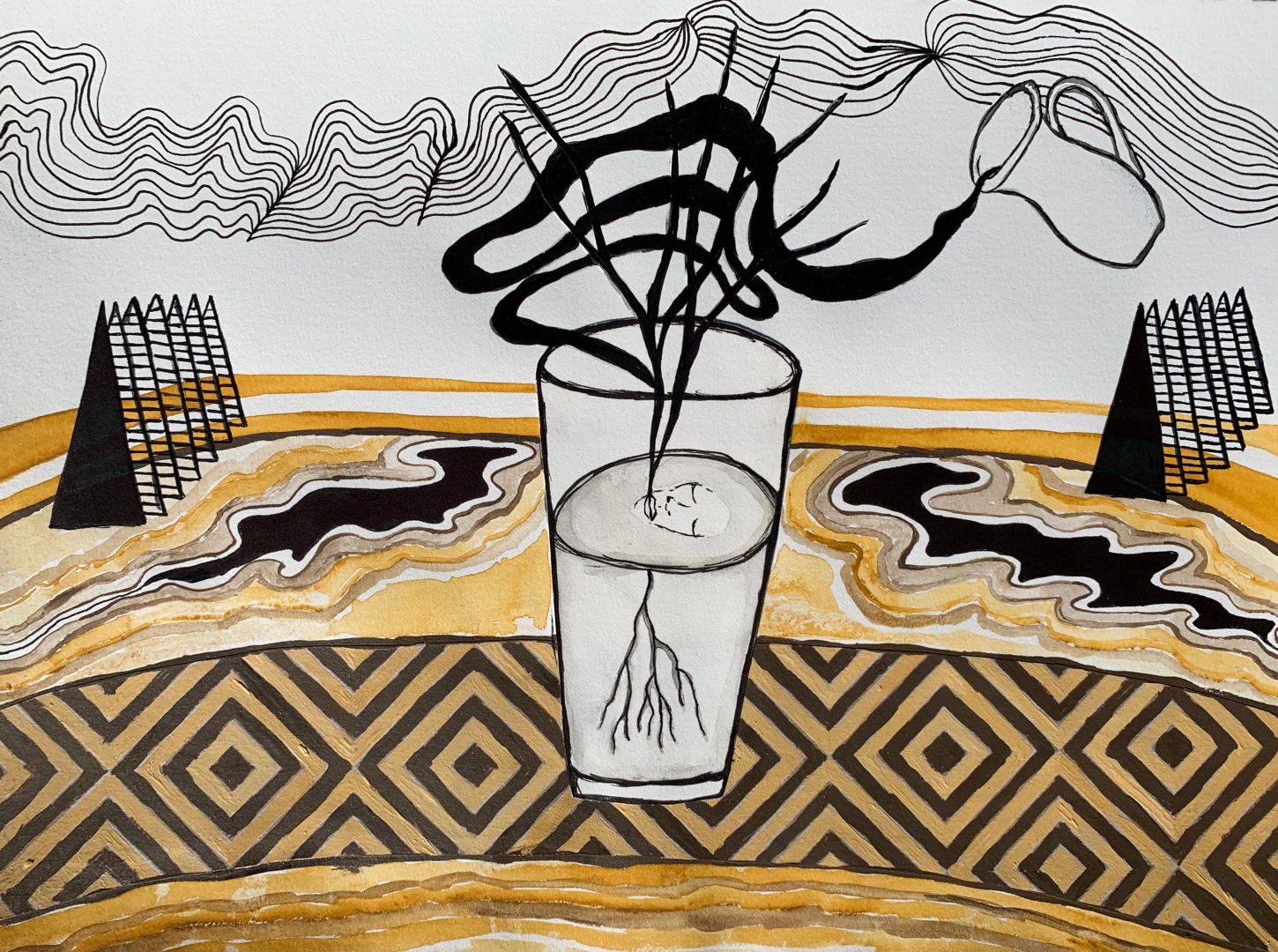 I personally don’t consider myself a professional artist rather I just keep doing what I love and never give up. That is the lesson I have learned with my own experience with art. If you love to do something, just keep doing it no matter what. Eventually you just become more confident and the art comes out more natural and from the heart. Early on my art was very typical in subject matter but has evolved into a more subjective and discrete theme. Multiple people could view the same art piece that I have done but feel and interpret it in completely different ways. I don’t necessarily start a project knowing exactly what impression I want it to leave on someone viewing it. I may start off with somewhat of a doodle and then as it starts to progress I may lean toward a certain mood that I feel it is progressing towards. I like to keep the impression of my art more open to whomever is viewing it which allows people to create their own feelings about it. These are concepts I’ve learned from favorite artists of mine. The reason I really enjoyed their work was not so much because I understood the piece, but more because I didn’t. I still enjoy creating the typical subject matter as well but with an added twist. Such as using a variety of mediums as well as painting on different objects. One thing you’ll find in my art is I will always incorporate nature as I do have a strong connection with the beauty of earth.