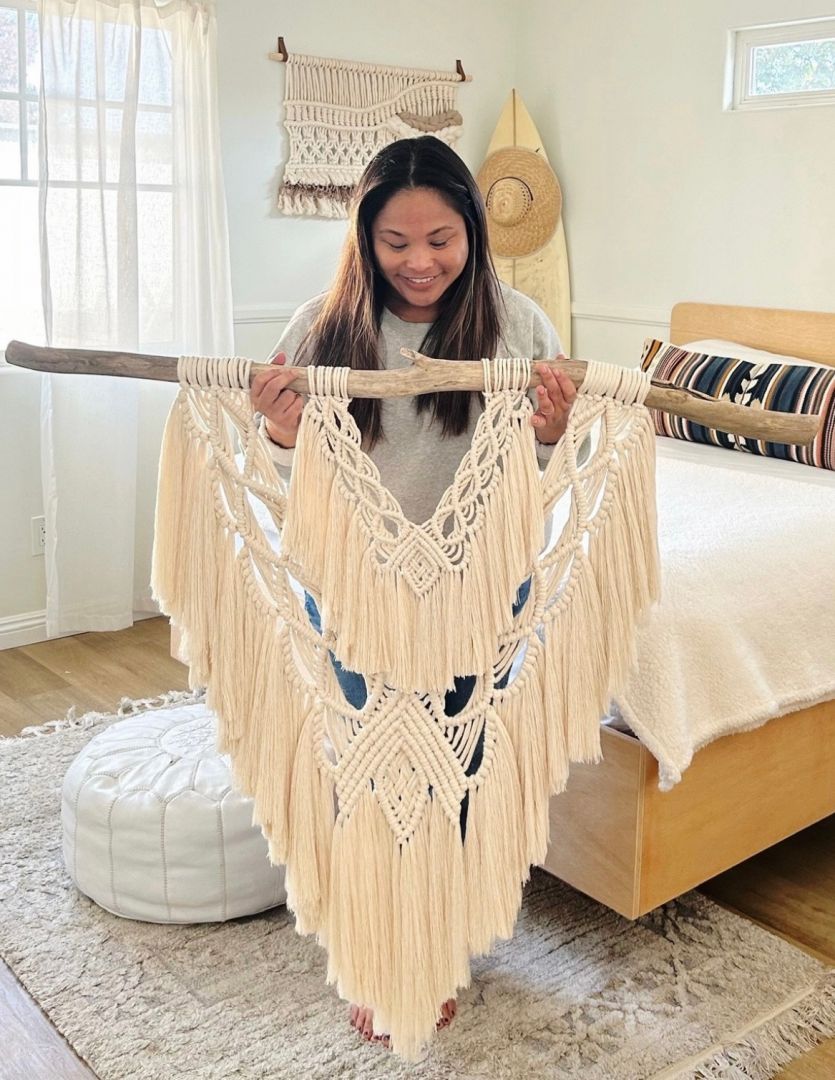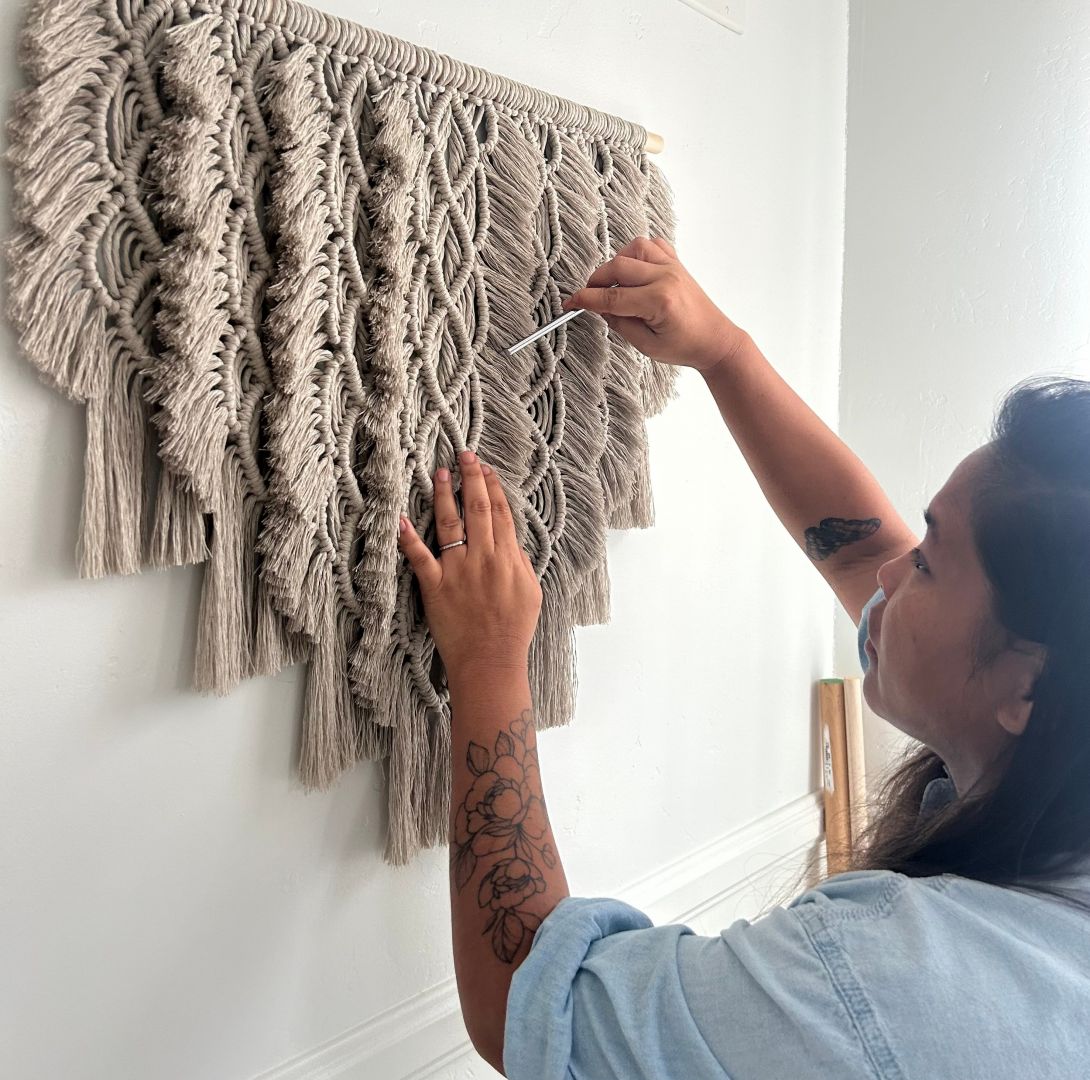 I’m truly proud of this aspect of my work. Being mindful of our environment and surroundings and how I can contribute in a positive way. I work with primarily fiber arts creating macrame wall hangings or woven tapestries. With every piece I create, I maintain a deep understanding of sustainability and its impact on future generations. By doing so, I utilize zero-waste cotton cord, recycled materials, or items found in nature. It’s important for me to never over purchase materials and use fiber in many various ways.