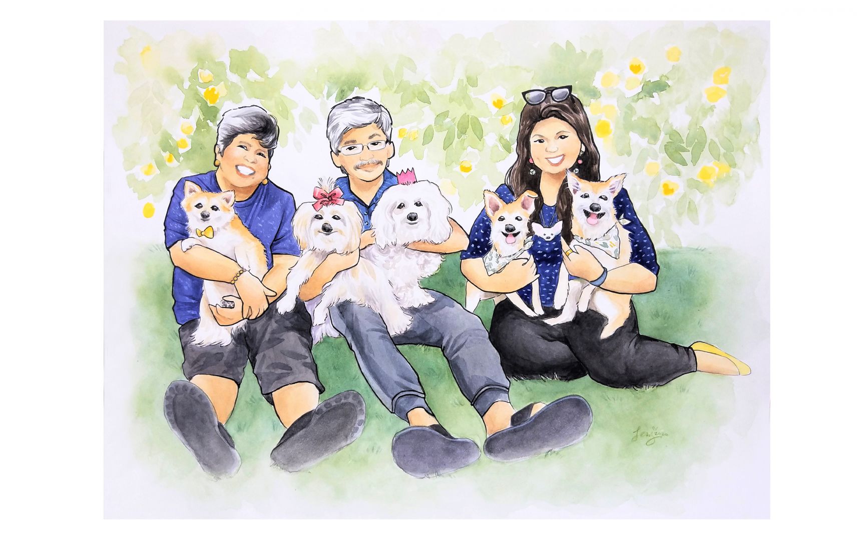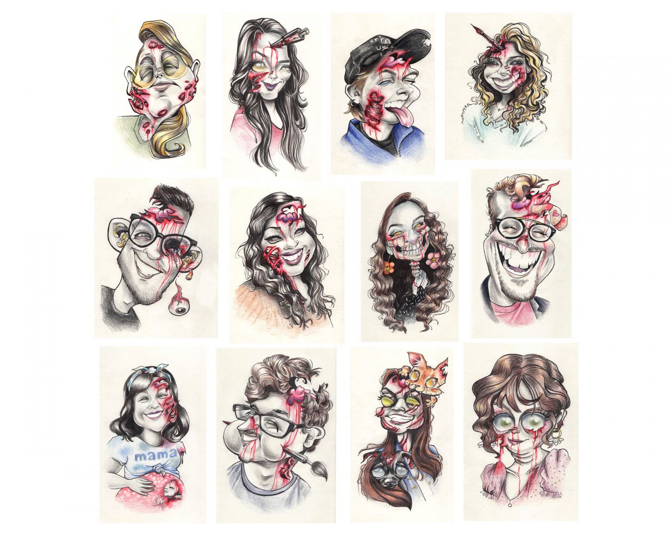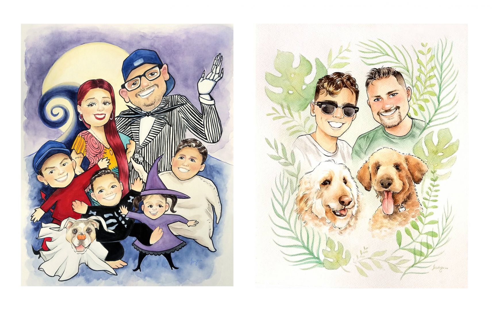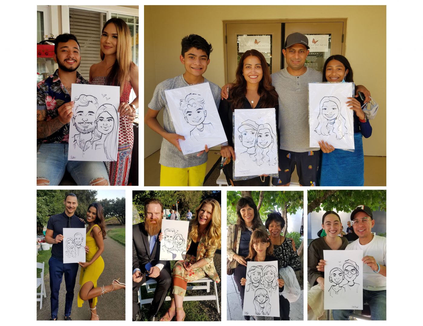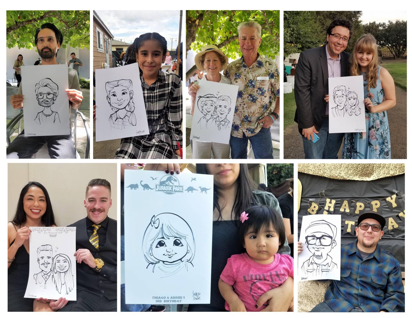 Over the past 6 years, I have poured my heart in training to draw whimsical cartoons, and specialize in caricature/portraiture art, but first I’ll start with a little backstory. I studied at CSU Long Beach, and I graduated with a BFA in Illustration. In school, I was told my multiple professors how anatomically incorrect my figure drawings were, but also complimented the “caricature quality” from my sketches. At that point, I decided to embrace my stylized portraits, and applied to be a caricature artist at Knott’s Berry Farm and Disneyland shortly after. Not going to lie, I struggled the most during the first 2 years of learning the foundation in traditional caricature art. I had gotten so used to having plenty of time to create a “masterpiece,” so for me, the most challenging aspect was creating quick and accurate sketches in a short amount of time. However, with more practice gained from working at private parties, the performance became more natural. I was able to let go of the “perfectionist” in me, and developed a great rhythm while drawing each guest. The best feeling was witnessing the happy reactions of guests, and developing the confidence of consistently creating quick caricatures! *woo tongue twister* Although traditional caricature art may have some odd stereotypes, or people might “fear” getting one done, I would like to remind everyone that each artist handles their craft differently. The intentions behind my caricatures are to be welcoming, a bit more flattering, lighthearted, and enjoyed by everyone of all ages! Of course, unless requested to be “zombified,” around Halloween time, or even as a playful gift for surviving this pandemic.