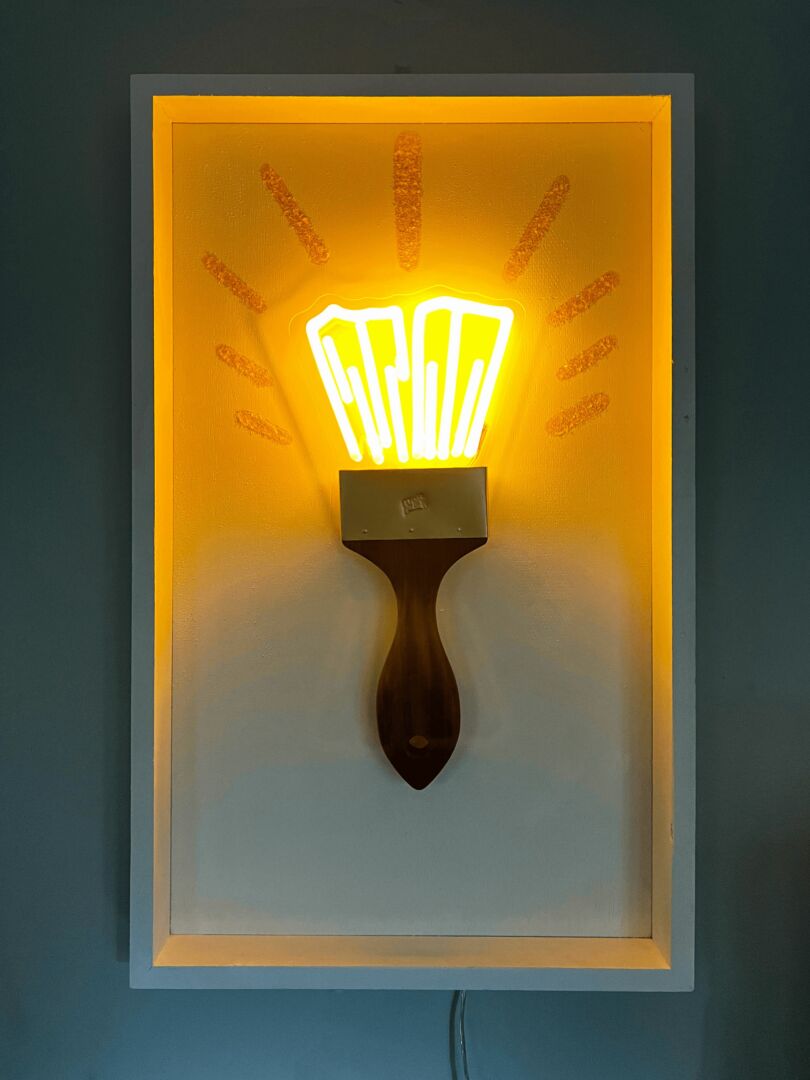 Lastly, my series “Literally?!” explores clever wordplay and pop culture references, this series is the manifestation of everyday sayings and colloquialisms. Each concept is ingeniously transformed into physical objects, paintings, or a combination of both encapsulating the meaning or visual representation of the phrase. Some pieces elicit lighthearted laughter, while others are crafted to provoke deeper contemplation, challenging preconceived notions and inviting introspection on the subject matter.
