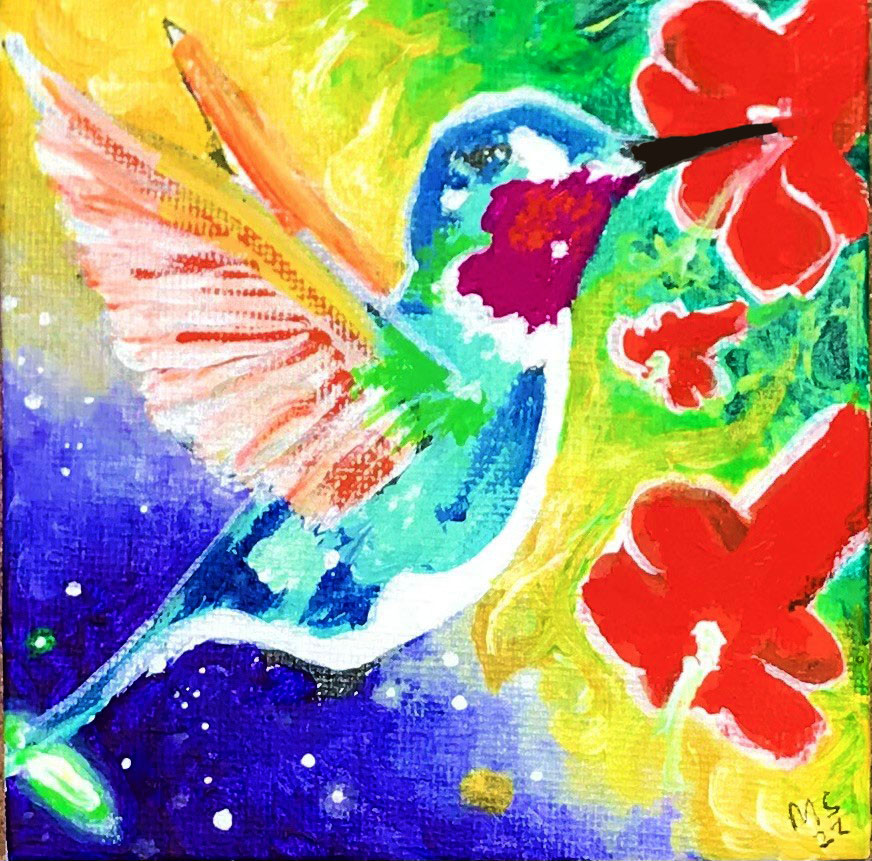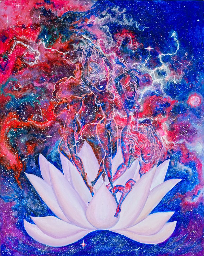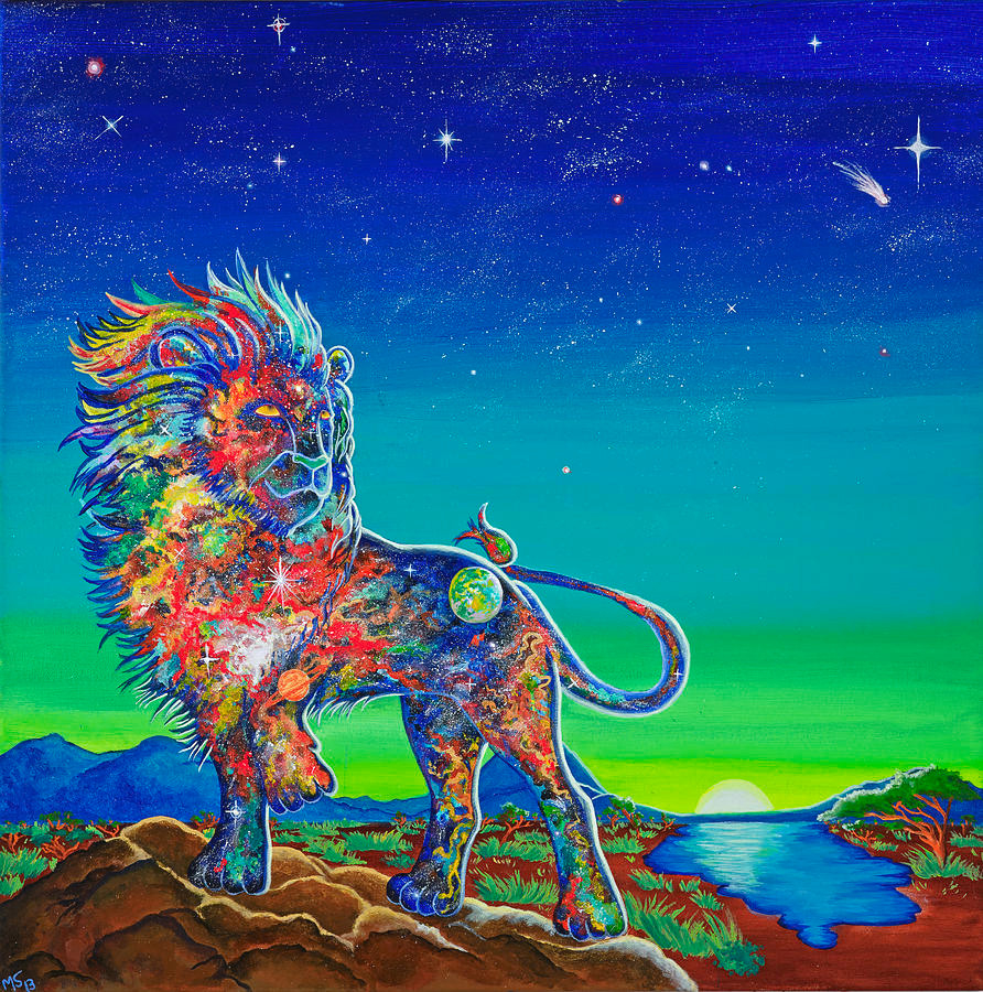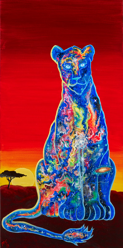 My art shows the universe within humans, animals and objects in the form of bright colors, nebulas, stars galaxies, planets,etc. I love to show our innate uniqueness as well our oneness with all of universal creation. I get excited about the bright choice of colors to choose from as well as any deep meaning that arises from the painting.