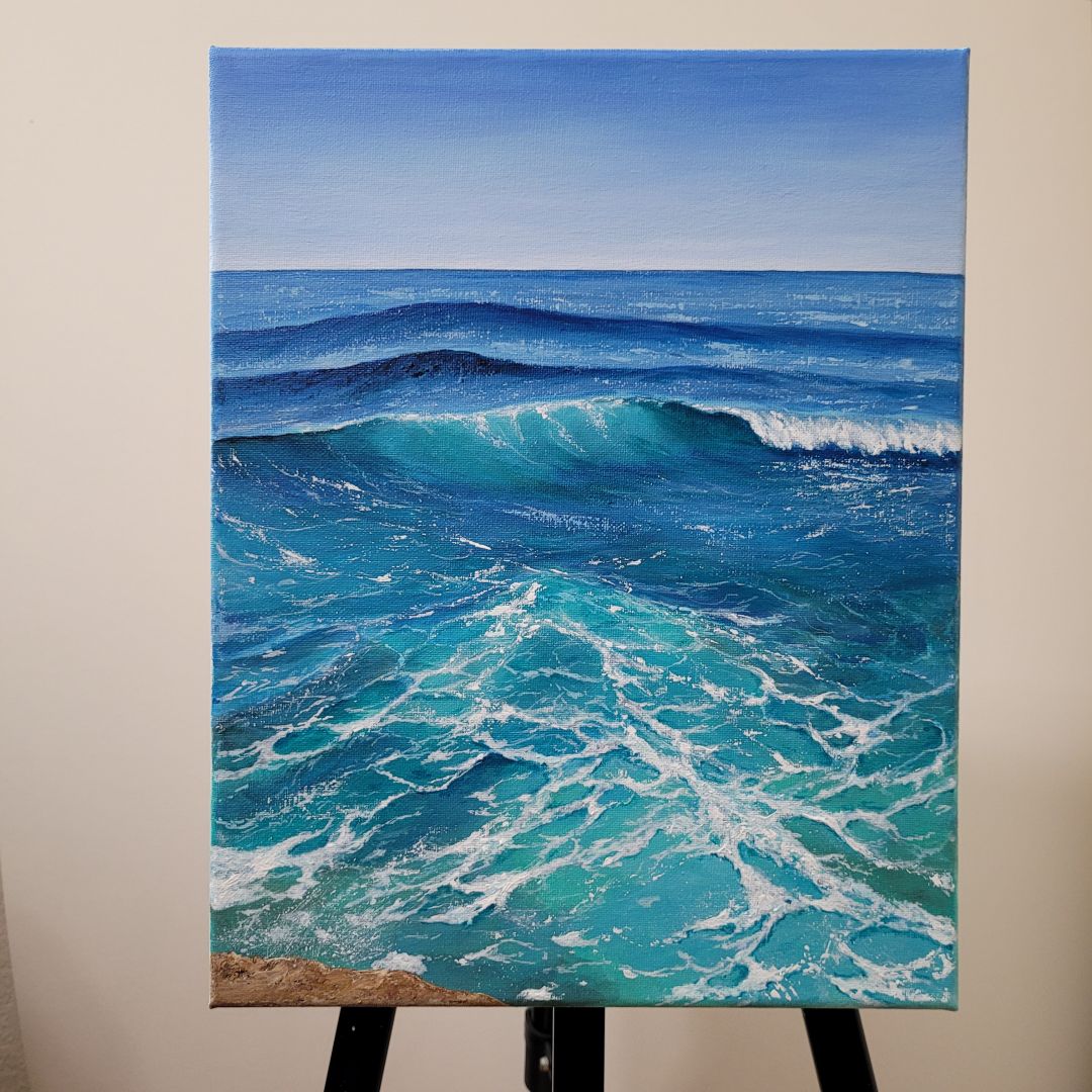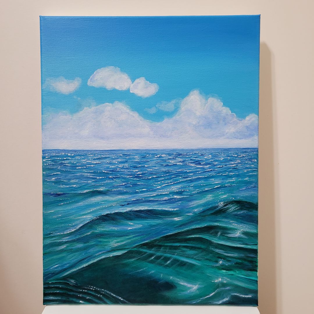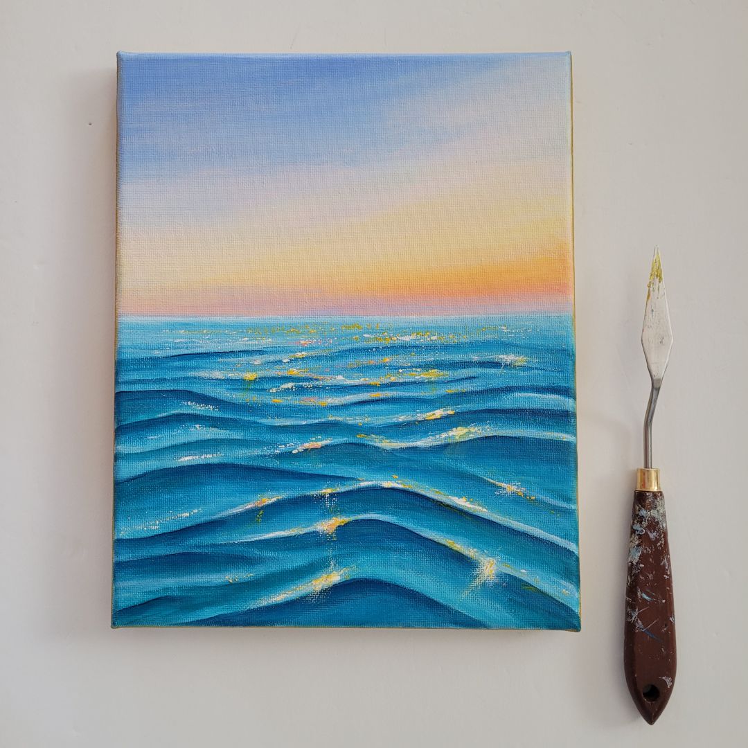 I’m completely self-taught. I paint with acrylics on canvas, paper, wood. My biggest inspiration are coastal views and the ocean. I’m particularly proud of my signature collections of miniature paintings.