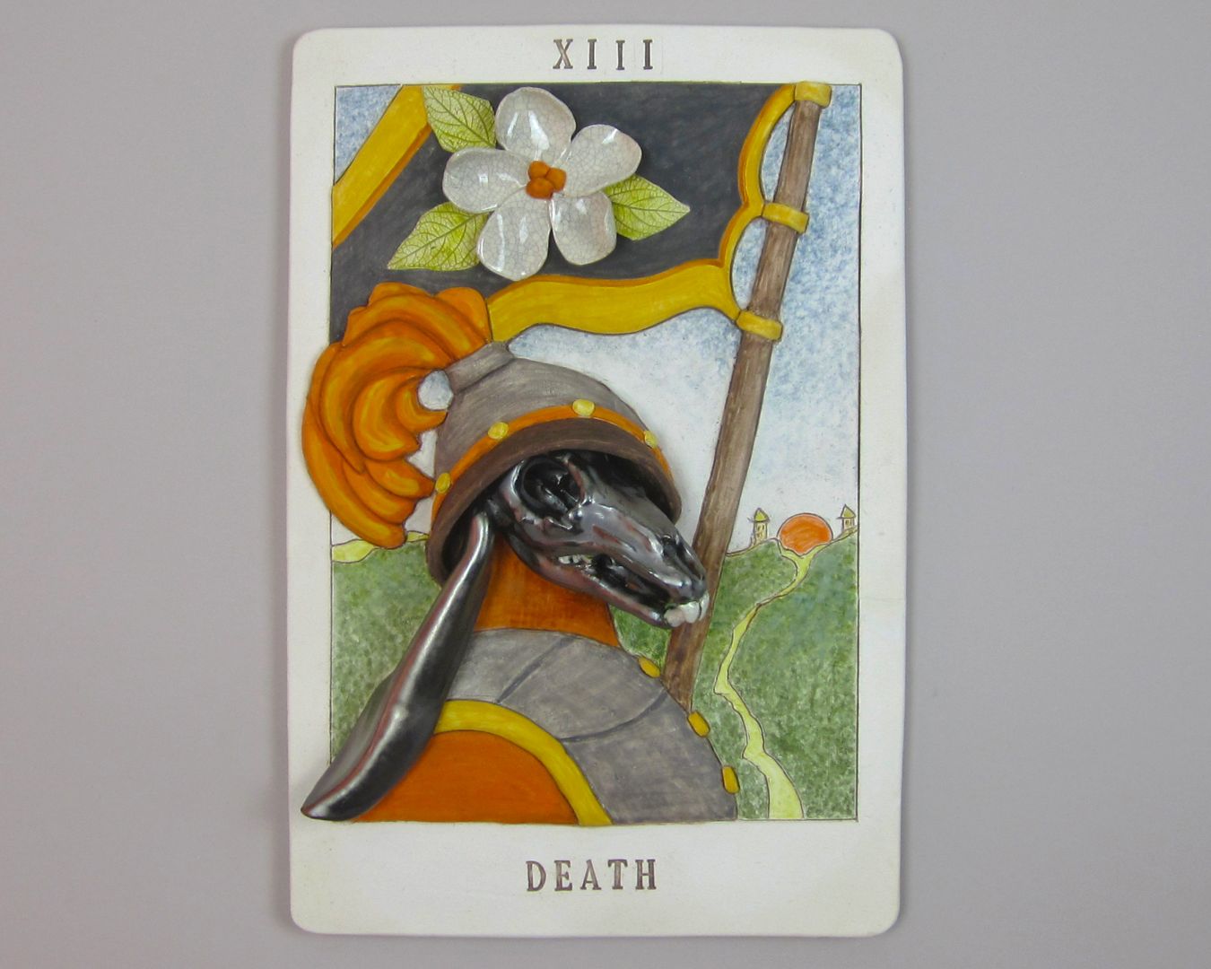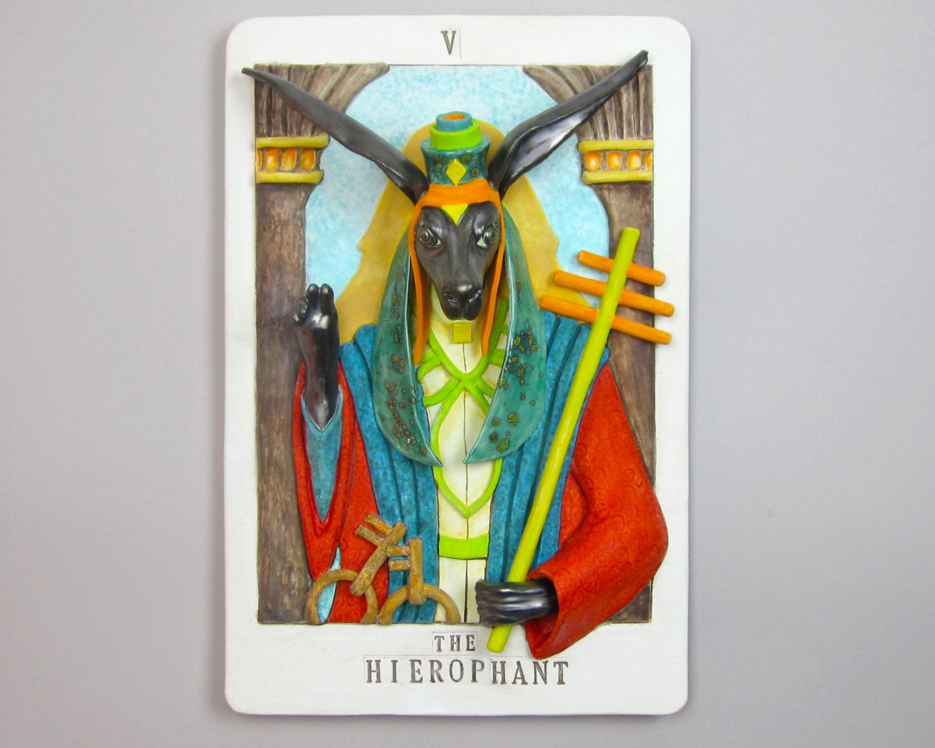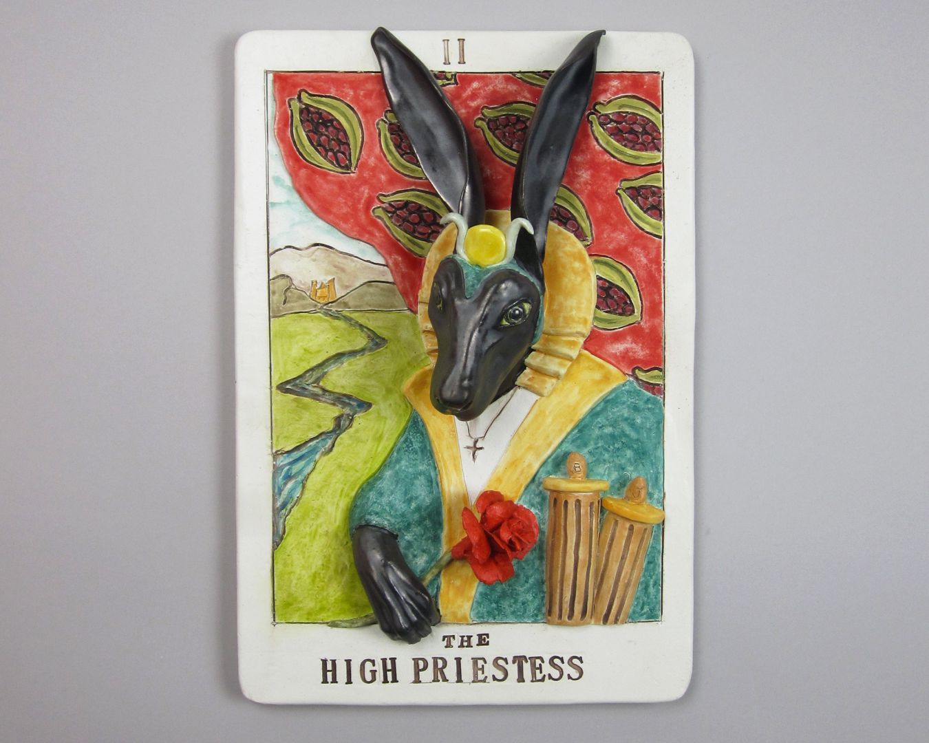 During these years I created a series of oversized Bas-relief ceramic Tarot cards, which I call “Scenes From The Leporid Tarot.” As I worked on hand building these one at a time, it helped me ride out the wave of Pandemic isolation while I worked through themes of death, judgement, and spirituality. By the time the Pandemic was over, I had created 25 ceramic Major Arcana of my own Tarot deck!