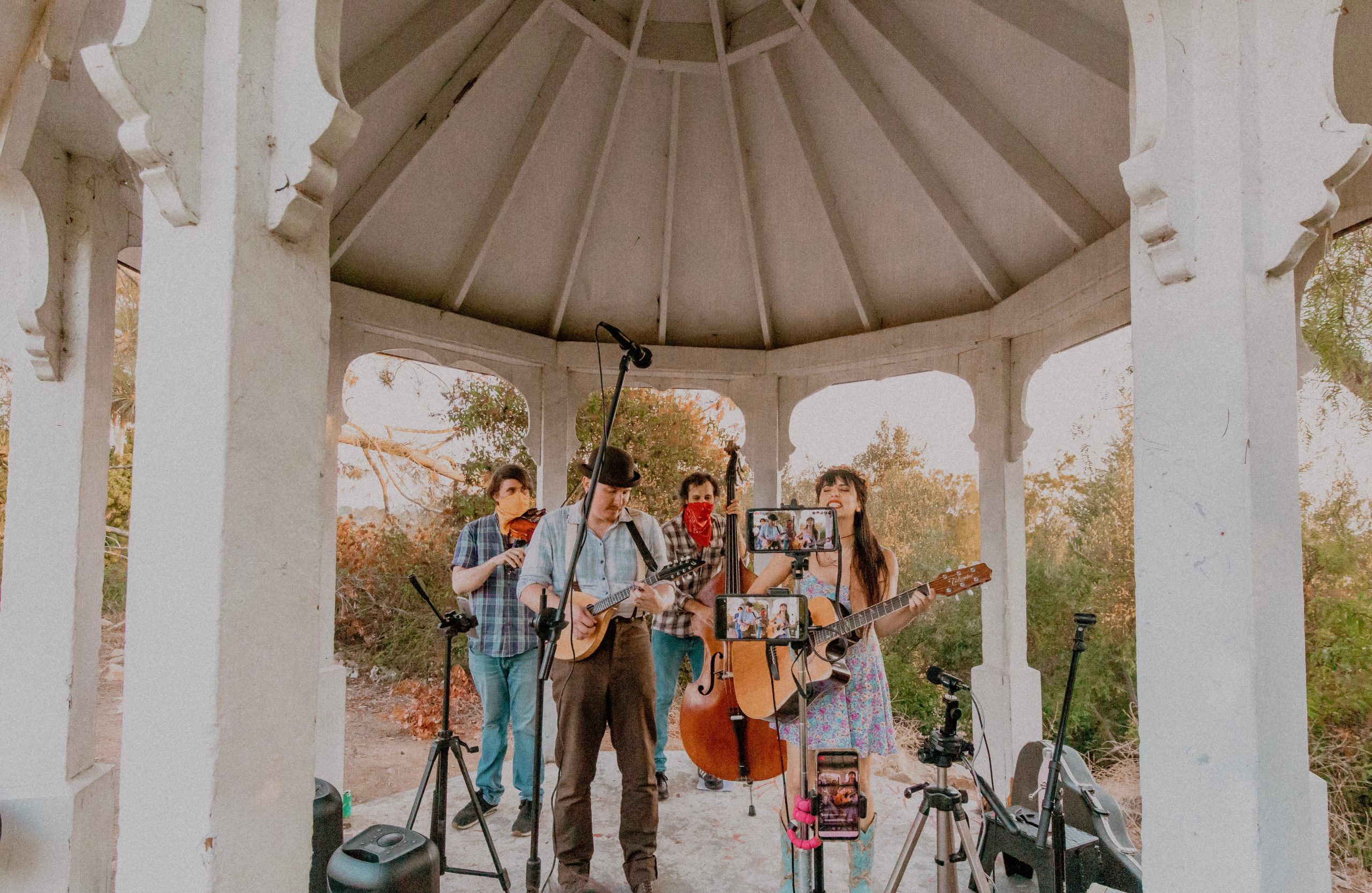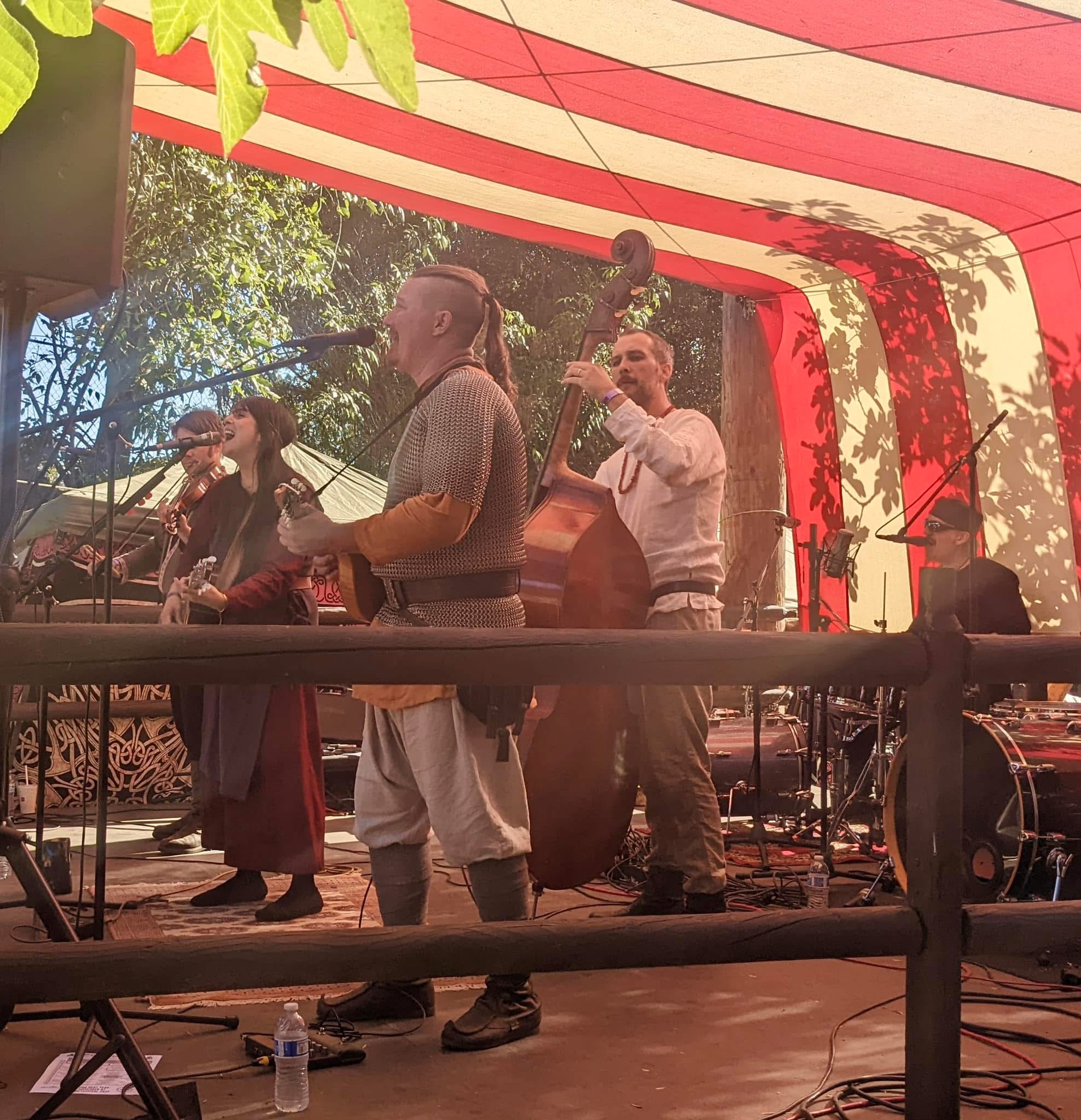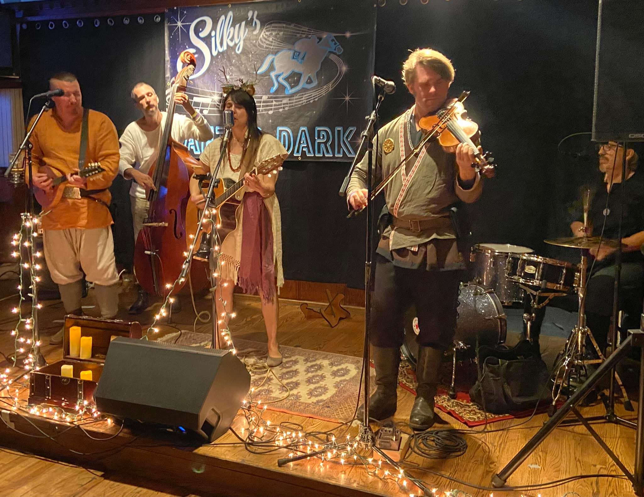 2020 hit and we found ourselves, like many musicians, out of work while the world shut down. Being resilient – and bored – we started doing livestreams on our patios, balconies and parks. A bassist friend of Chris and Seth saw it and wanted in. He had just acquired an upright bass and dug the folky direction we were going in. Norm had played in other projects with the rest of the guys and joined with his drums soon after. Within a year, we became a bonafide band. The unique approach we took for our band, the Silk Button Butchers, has given us opportunities to play shows and festivals like Viking Fest in Vista, CA and Irish Fest at Biergarten in Huntington Beach.