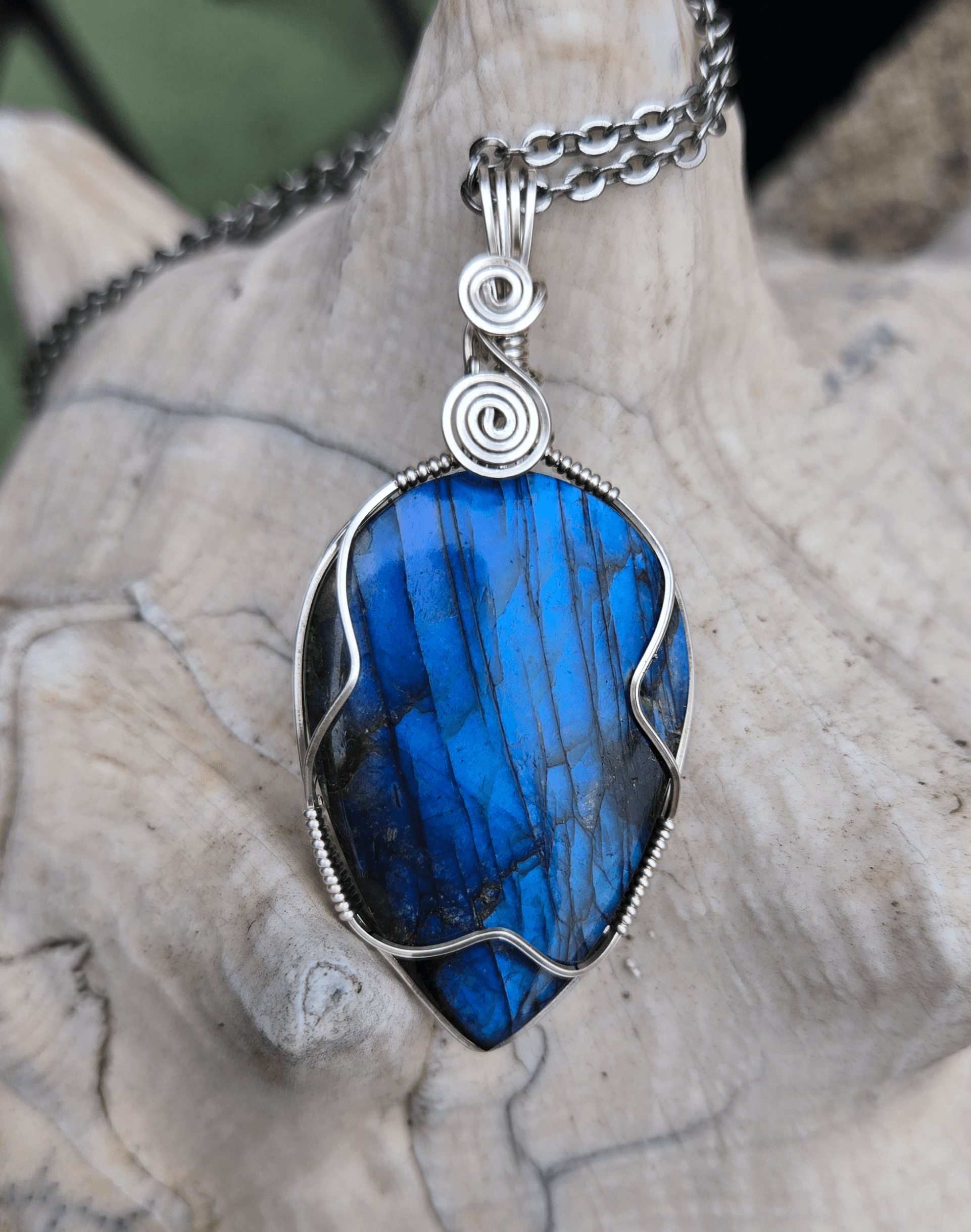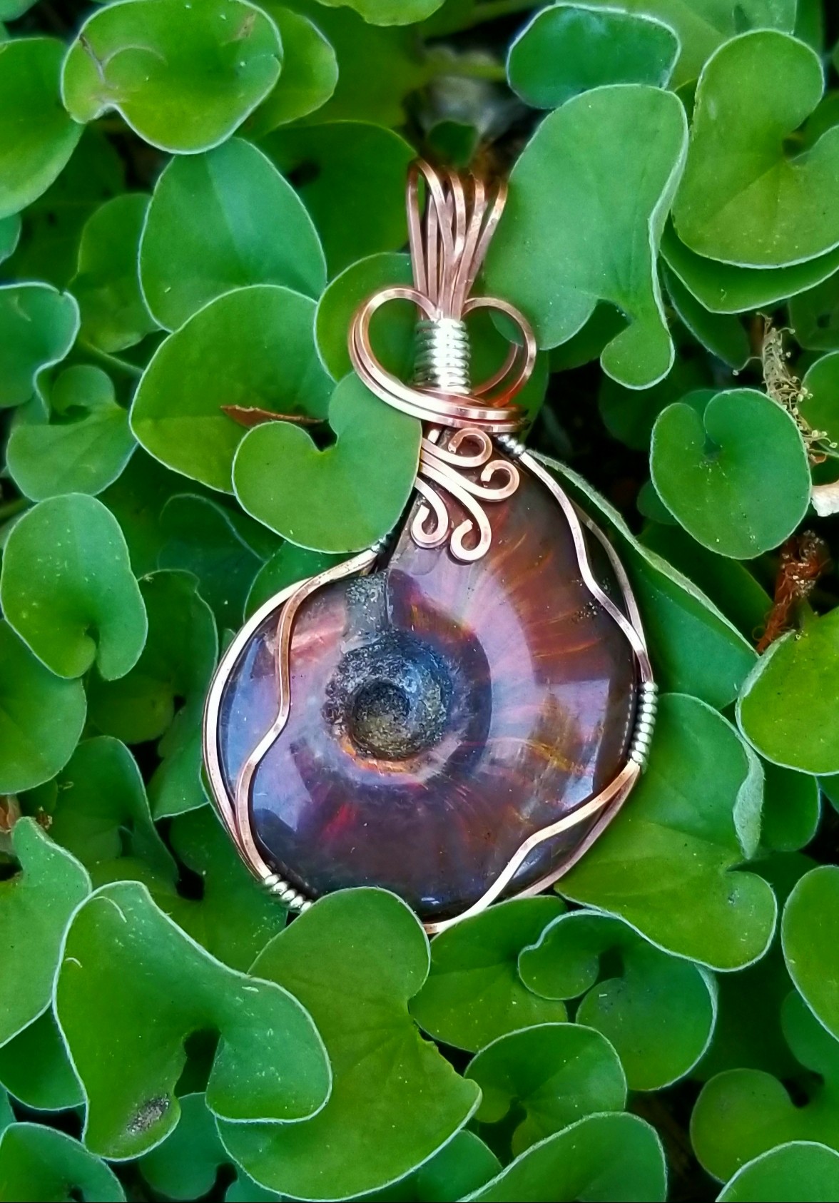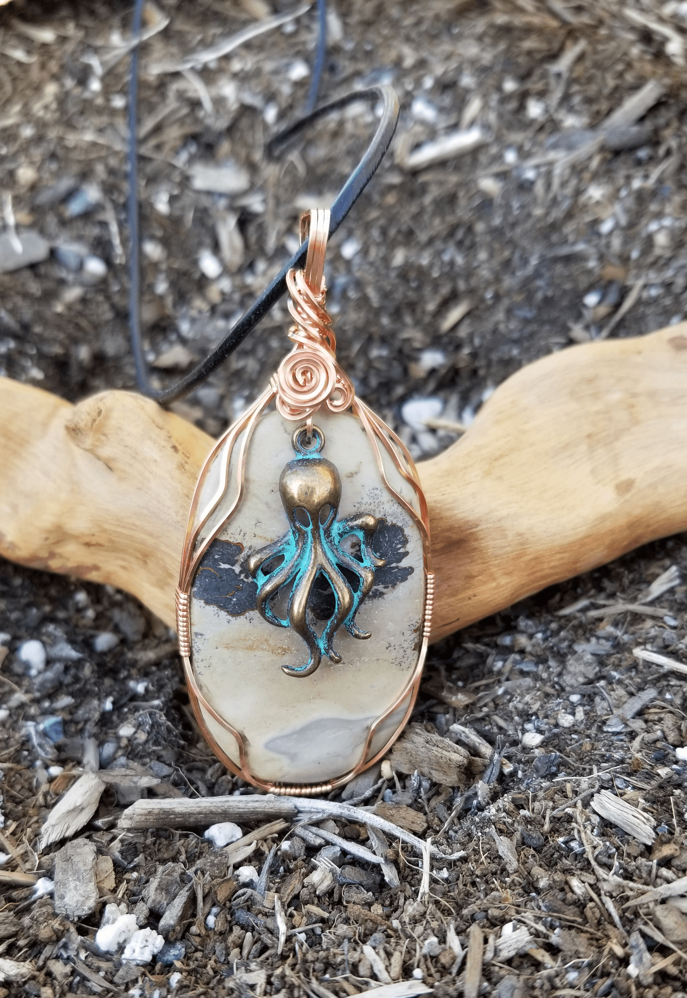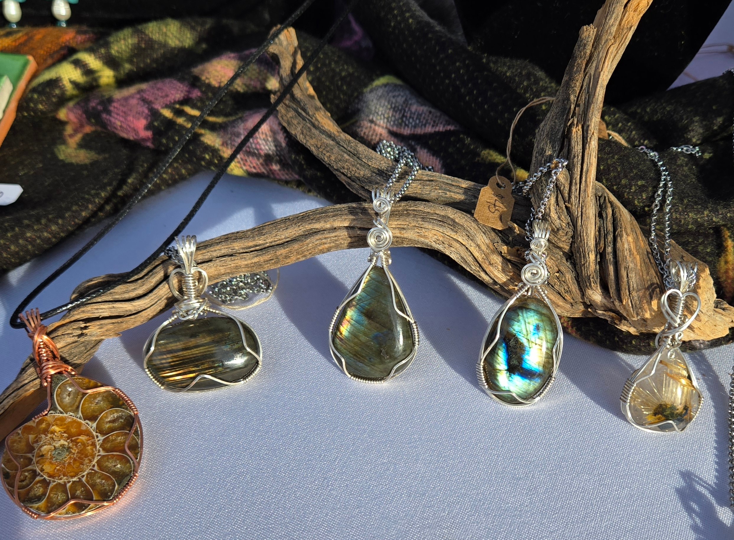 My jewelry is an expression of my love for nature in all it’s beauty, each stone or glass piece is hand selected, no two are alike. Each piece is hand wrapped in sterling silver or copper to accent the material’s natural beauty. To keep it “Local” the majority of stones and crystals I purchase here in San Diego.