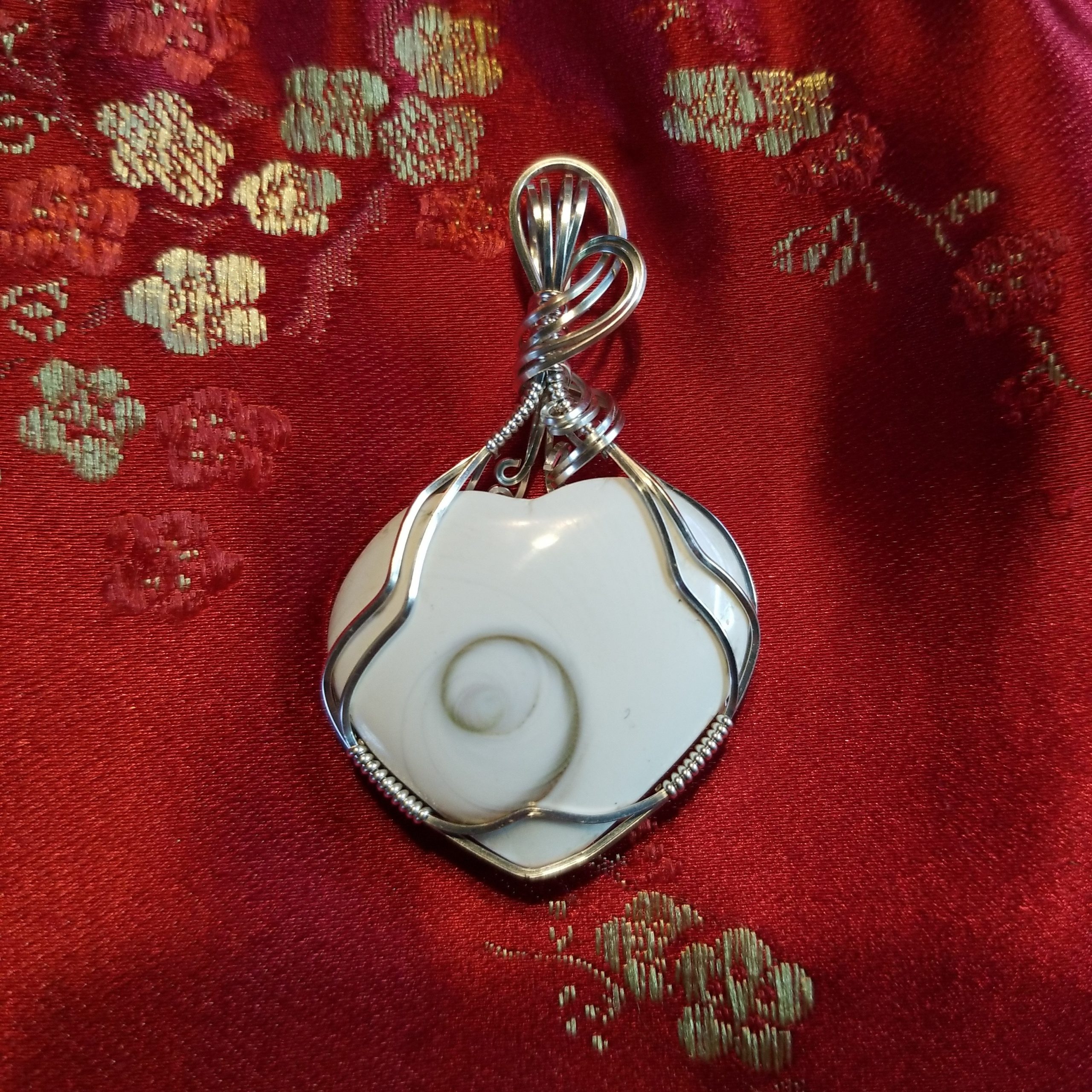 I found a part time job with a great group of people and began to create art again. One day I found a polished stone in a box that belonged to my Mother. It was simply beautiful in my eyes, green and white in a beautiful triangular shape. I thought let’s see if I can turn it into a pendant for myself, I did and loved it! After a number of YouTube videos and books I began wrapping other stones and giving them to my family and friends. The feedback was great and there were suggestions that I sell them. So I started to gather information, with my husband’s undying support we visited countless farmers markets and craft fairs I began to see a path. I located a store in North Park that had a market once a month and I began selling my wire wrapped stones there. Next I was invited to rent space at the same store so, and I was suddenly in business! I was also invited by an artist friend who was at the Studio Door just down the street from where I was selling and he encouraged me to show my jewelry to the gallery owner. He had me show in several gallery events and I was so delighted, at one point I had space at the studio for several years and now I sell at a local farmers market, held by The Brew Spot in La Mesa twice a month.