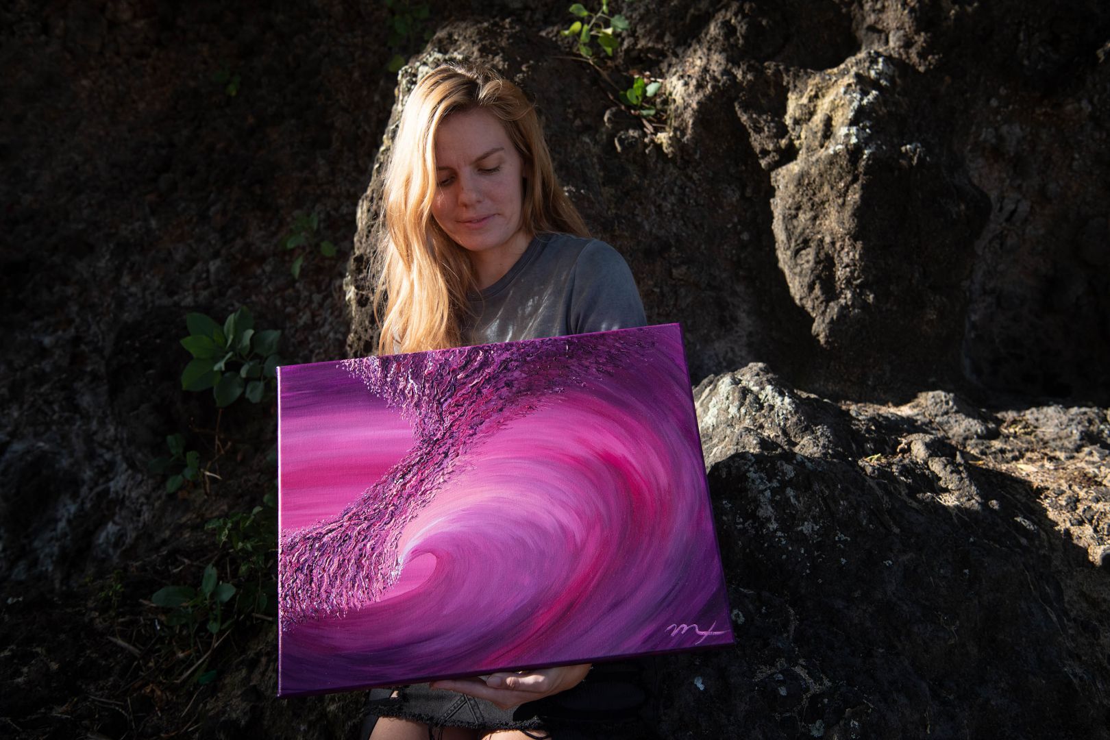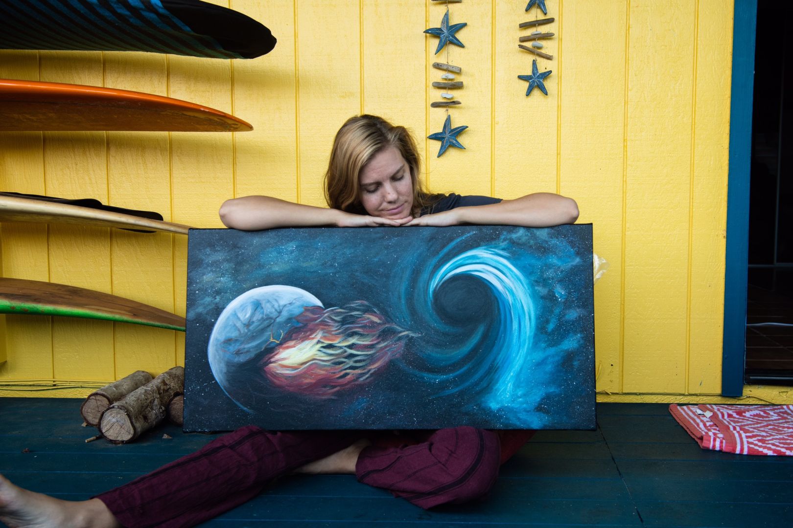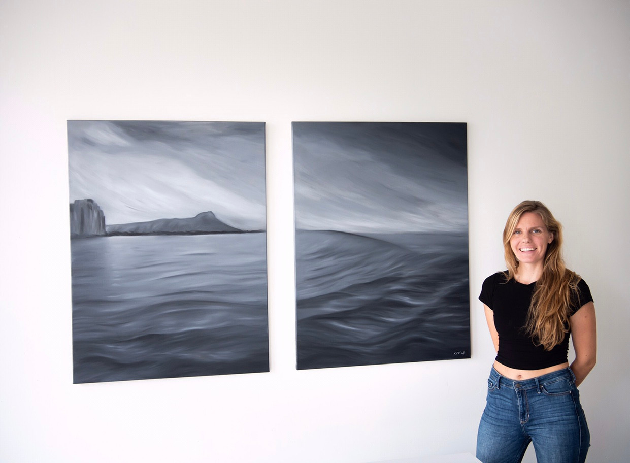 I am a surf art and intuitive art painter. I started to paint summer of 2019 as my intuition kept nagging me to start for nearly 2 years. I kept ignoring the urge to paint because I never attempted outside of grade school art class. When I finally bought my first supplies from the sheer irritation of hearing the same message, I felt a beautiful connection within myself. I felt more calm as if I had completed a meditation session. I became curious of the energy when I painted so I kept exploring it through painting waves. I gain a lot of energy from the ocean through surfing and being near it which led to wanting to express my love into the painting. In February 2020, I sliced my head from a surfing accident. I realized that day how precious the present moment is and how living fully each day wasn’t a cliche saying. Only soon did the pandemic hit and I lost my day job. It turned out to be a blessing for me as I finally had more energy and time to paint. Learning to trust myself in this business has been a growing process. It is a challenge to accept not having a steady income but the fact that I’m not stressed from work is what motivates me to keep evolving. My brand is about following your intuition because your intuition will lead you to new opportunities and endeavors. If I hadn’t listened to her to start painting, I am not sure where I would be. Painting for me is a meditation, a form of connecting back to my true self and source. I hope that my paintings help you remember your true self and raise your vibration as well. My paintings are infused with healing energy like reiki and love vibrations. I strive to set intentions for them so that the viewer receives a spark of remembrance of his or her passion. I started to infuse abstract art into a new series of portraits. Similar to a Reiki healing session of clearing the energetic field, I tune into the frequency of my client and choose specific colors that will raise his or her chakras and overall well-being. It is a fun process for me that I get to combine two passions: painting and energy work.