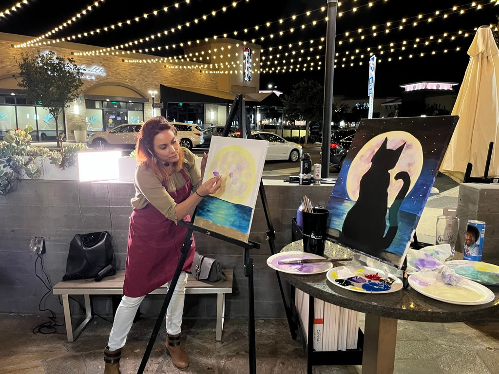 Art stepped into my life again. During the pandemic I became a mother and I truly saw the importance art had in my life. Art helped alleviate the postpartum depression that I struggled with in both my pregnancies. My family understood that art truly was a calling for me to make more of a career than a hobby. My mother would help babysit both my boys whenever I landed a mural job, giving me an income that I can spoil my kids with. My husband was supportive in helping me find mural jobs, and he was always proud of my work. I ran into an art instructor position with Painting and Vino, and I decided to give it a chance in being one of their licensees! Currently, I am running paint and sip classes at 7 different venues in north county, bringing two artists on board to help teach classes and expand. I couldn’t be happier for the balance this business has brought to my life.