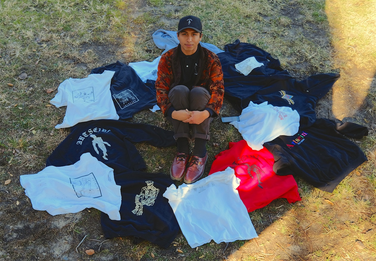 I have this obsession with rabbits, flowers, skeletons and drawing things from art history in my own version. Usually I read about art history to get inspired from others, or I just start sketching a lot and pick ideas out. My work is made of many mediums such as ink, color pencil, oil pastel, acrylic, crayon and basically anything I can get my hands on. From there I scan the drawings and I get to decide what I want do with it like put it on clothing for my company ARTSEINI, paint it on a big canvas, or make a sculpture from it. To get to where I am today it took a lot of repetition, trial in error, and patience. I had to figure out what people liked the most when buying my clothes/art. I do all the designs myself so it can be hard coming up with ideas to put on clothing or it’s hard to pick out from the millions of ideas that I have. Over the years I’ve also been practicing how to draw better and develop my own style. I also attended Fullerton Junior College where the art department has one of the greatest professors and they all taught me something to improve my designs and just how draw effortlessly and have fun. I always made art all my life but learning the technicality and history of it really improved my designs, and gave me more inspiration over the years from when I started in 2016. Just this year I feel like everything is finally coming together for my brand. I feel like I had to stop being so tedious about designs, use new mediums, experiment more, take bigger risk! Like I tell everyone I like art and clothes, so I just put them together.
