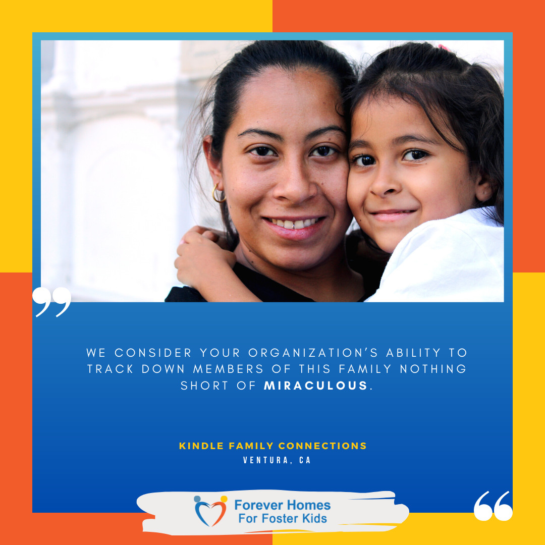 Fortunately, these same agencies and other organizations are able to contact my nonprofit, Forever Homes for Foster Kids. We are the leading experts in finding a child’s relatives in Latin America. One agency sent us a case where a fifteen-year-old teenager was placed in foster care. The teen could only provide us with the name of two uncles and aunts and that they lived in the Dominican Republic. We found one of the teen’s uncles in less than 48 hours. Finding a child’s relative in Latin America is not only possible, we have more than a 90% success rate doing so. The result is that the relatives will almost always give information to the caseworker about an adult family member living in the U.S. The child ends up leaving foster care to live with a loving relative.