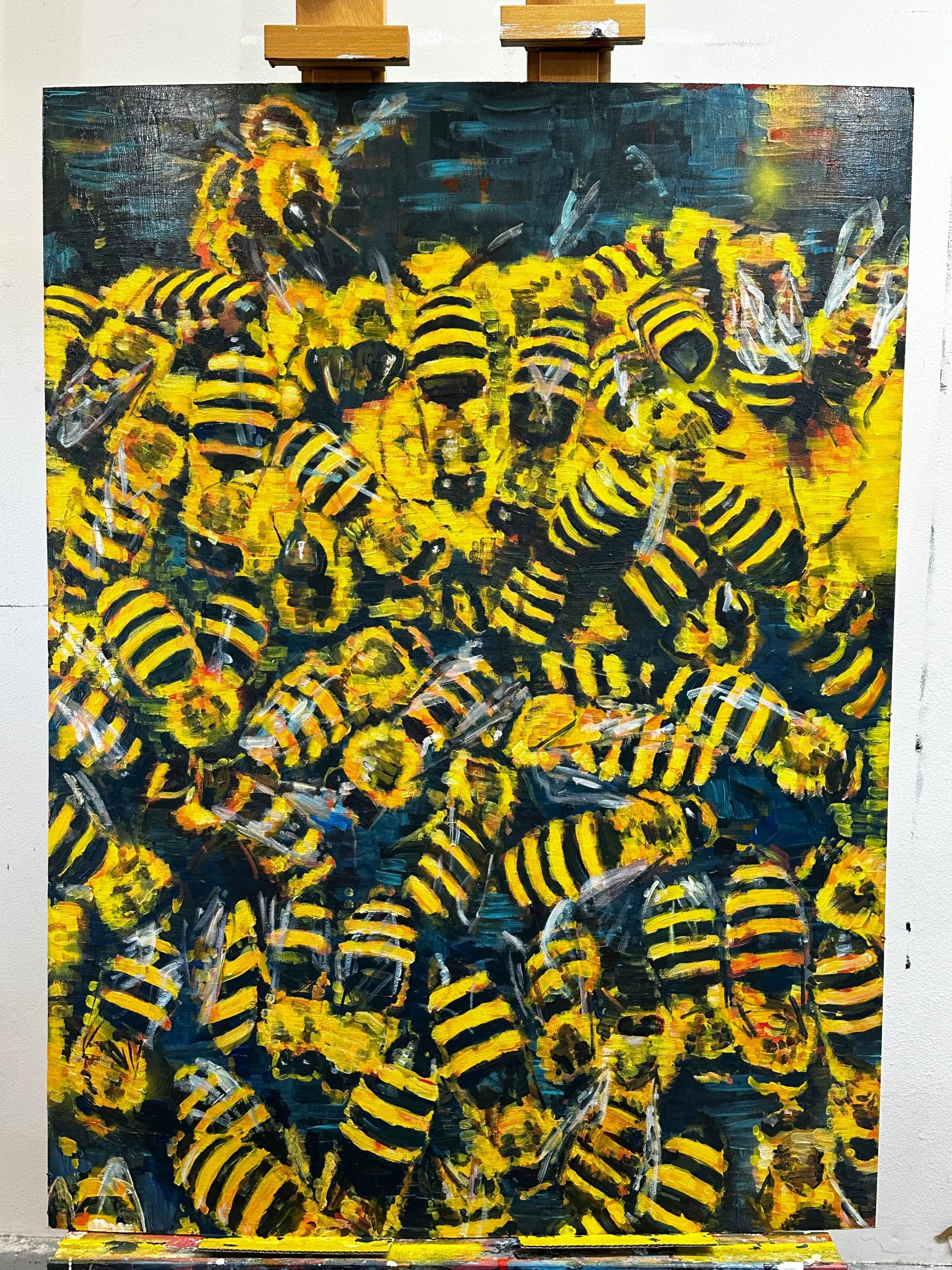 I question the role of painting In a rapidly changing world order, and how it fits into to the world consumed by screens. Recently, I started a food series: Its architectural scale and apparently simple geometry show an influence of Sol Lewitt’s wall drawings. I am questioning the power of art to change things, even though it is the only tool I have left. I enjoy the process of painting, and communicating with the viewer through art. Parallel to my studio practice, I also love creating public artwork, graphic design and lettering. I see it as an applied art, where you have to resonate with the community you’re creating for.