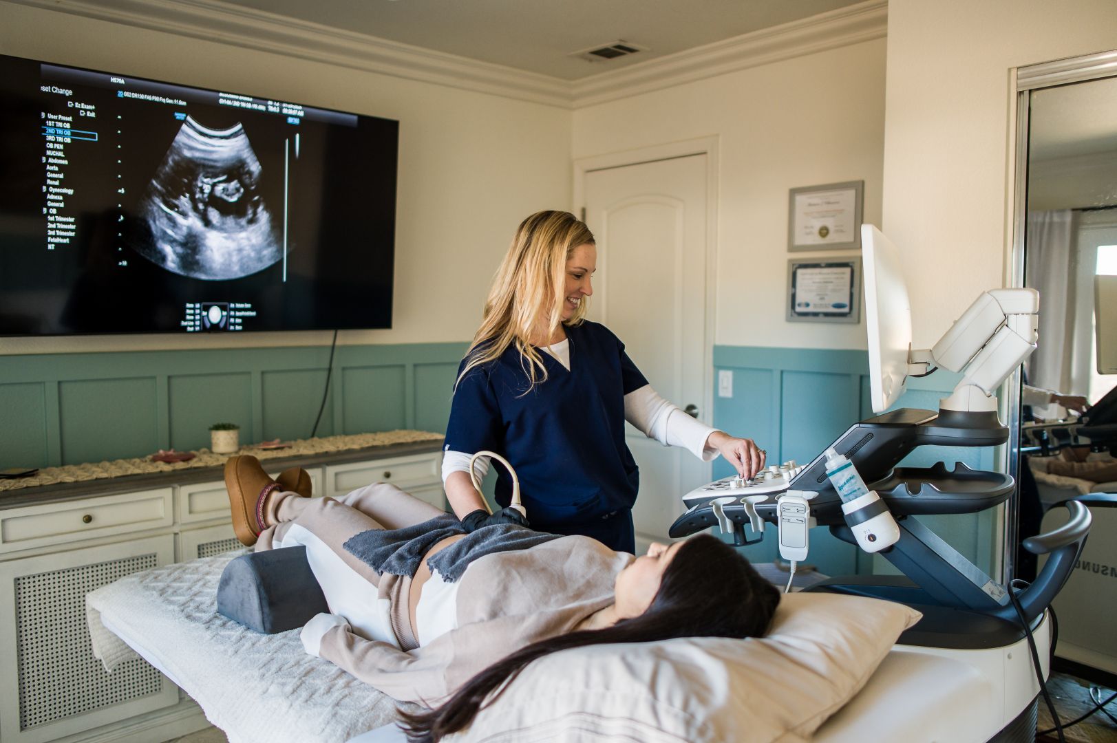 I will never forget walking out the doors of the OB/Gyn office one day in 2021. I occasionally work for Obstetricians and perinatologists in the area if needed. After a long day of scanning around 14 pregnant patients, I caught myself smiling as I got into my car to drive to the hospital where I work full time. On this particular day, I was able to show husbands and wives their baby’s heart beat for the very first time, or show cute profile pictures of their baby or tell them their baby has lots of hair or long eyelashes! I could go on and on! Seeing the joy on the parents to be faces brings me so much unexplainable joy! My heart feels like it could explode! I had a couple patients that day that came in to have their very first early ultrasound. Unfortunately, for those patients, the news was grim. I had to explain that there was no heart motion seen. As difficult as this is to explain to excited parents to be, I was able to comfort them, answer questions to the best of my ability, offer them pictures and give advice; as I, myself have experienced the loss of babies. As I left that day smiling, I thought to myself, I could do this all day for free! Then the lightbulb went on! Should I just start my own little side business? The thought of owning my own business scared the shit outta me. I’m not gonna lie. Haha! Well, my researching began! I started out looking up other private ultrasound places in and around the Orange County area. Much to my surprise, most of the people running these businesses and the techs performing the ultrasounds were not registered, licensed sonographers! They did not go to qualified schools, they did not have any experience working with Drs, clinics or at hospitals. To me, this is a disservice in the community. Our pregnant moms-to-be deserve better! And so it began………