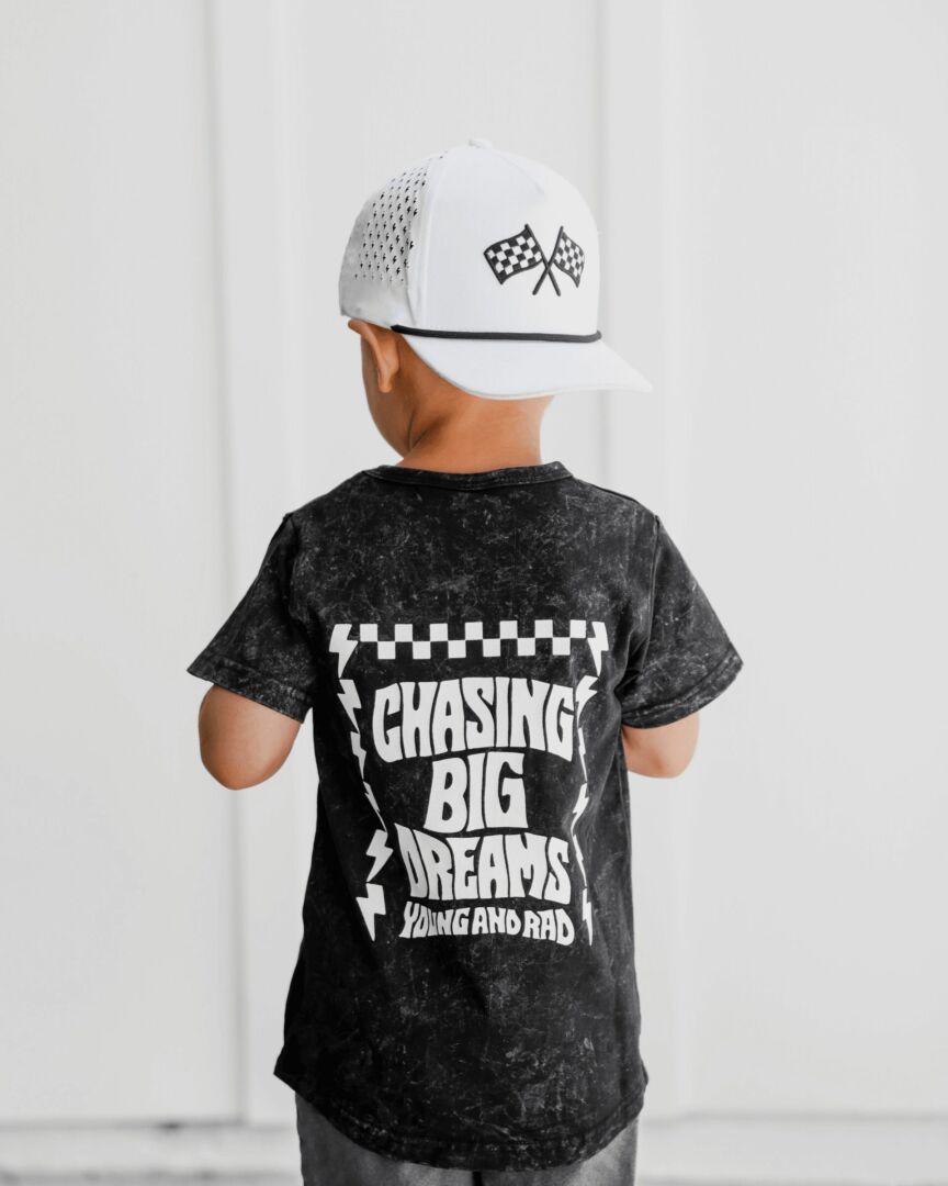 When I had my first son in 2021 I had the hardest time finding clothes and accessories that fit the style we were looking for. Everything was always colorful, dinosaurs and loud designs that didn’t really align with our style. The quality was also an issue when shopping for boys clothes too so I decided I would take it into my own hands. That’s when Young and Rad was born. In the beginning I really did it mostly for us but there quickly became a demand for the styles to be available publicly so I began to launch our line and it really just took off from there.
