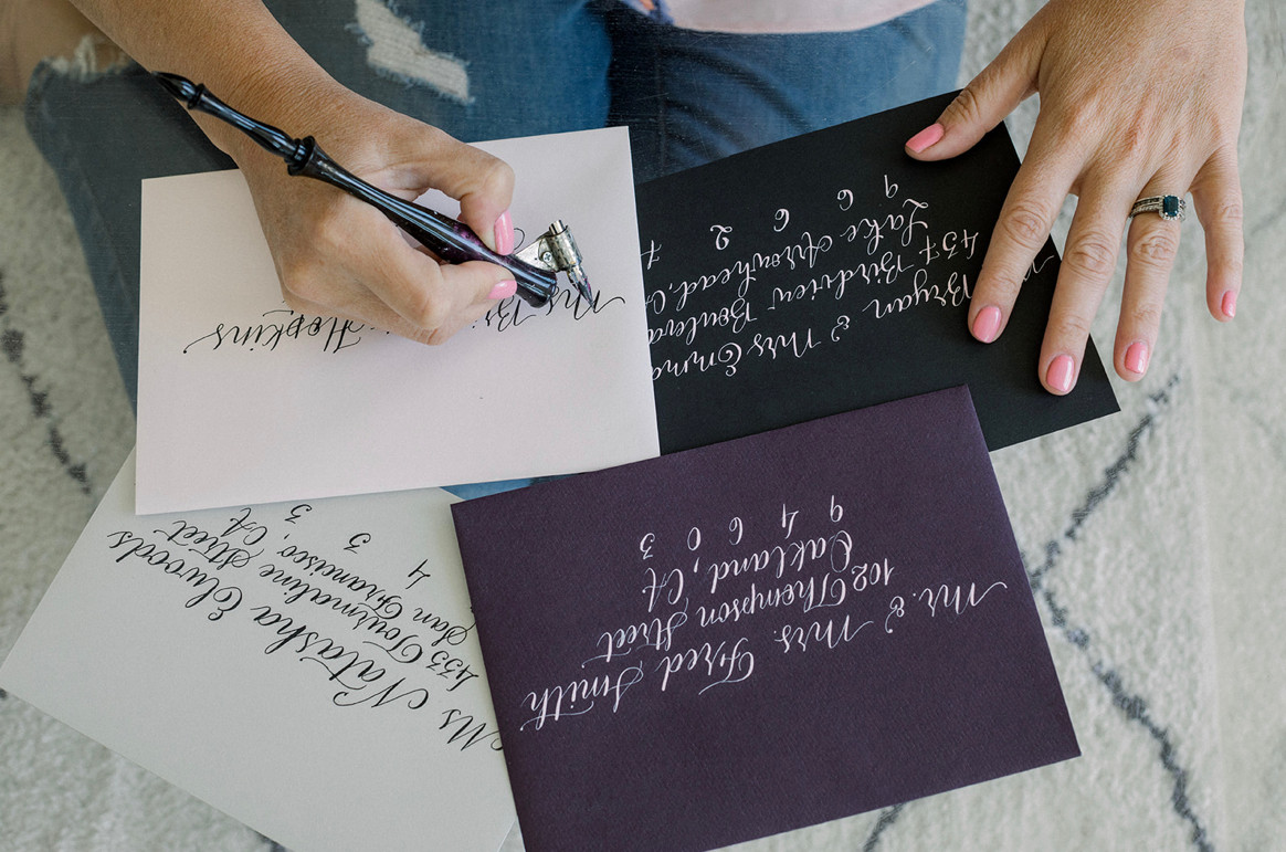 Starting my business was almost an accident. I was engaged to my now husband and since we were doing an ultra small wedding (by choice), i wanted to pay closer attention to my favorite part of it, which was the stationery. I wanted the invitations to be flawless (they weren’t LOL), and the design to be intricate (they were). Every guest had a different invitation design, which now I thank the universe I only had 15 people at our wedding. It took me 6 months of practice to have the calligraphy part to be decent enough that I would be ok addressing my invitations. What surprised me the most though was the fact that most people who started to ask me to do little stationery work for them, they were solely interested in the calligraphy part. As I was getting more requests for work, I decided to make it an official side business while I was still working on my corporate job. It’s true what they say about doing what you love and you don’t ever work a day in your life. It really doesn’t feel like work, even when I have to stay up way past my bed time so I can finish an order. It’s fun and rewarding.