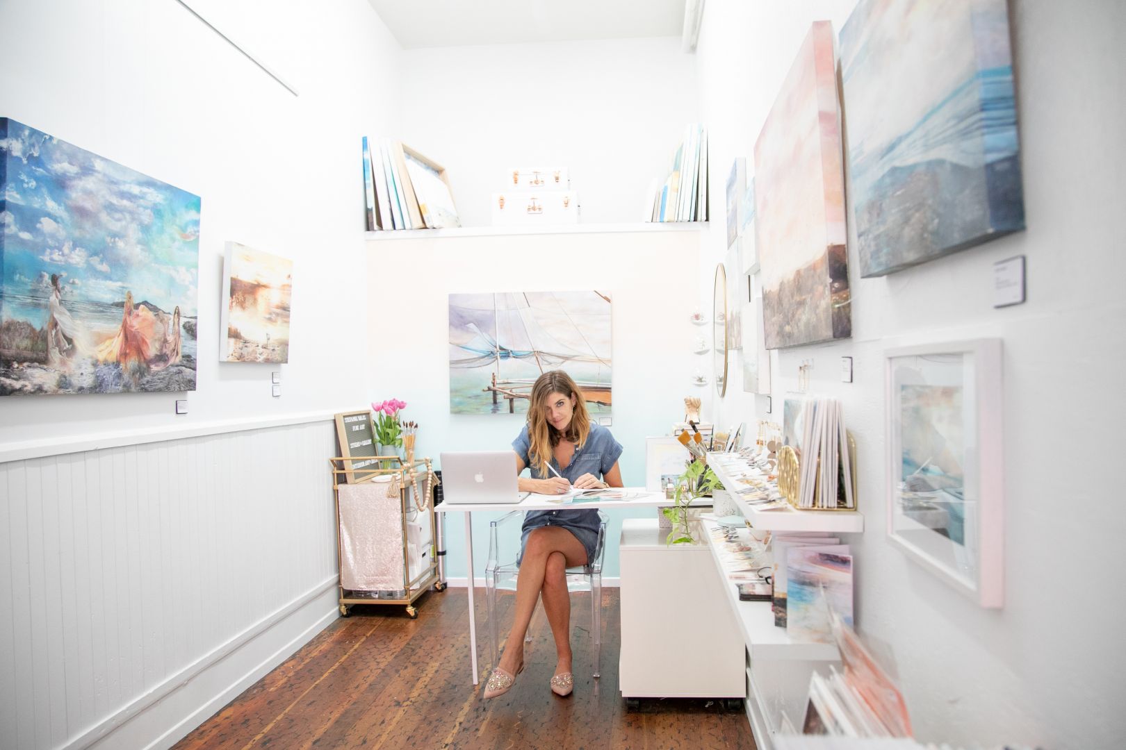 Besides the unwavering support of both my parents and my husband in pursuing a career in the arts, I believe a lot of my success lies in my approach to building my brand and career. I knew from the get-go that I didn’t want to live out the starving artist stereotype and that I didn’t want to put too much pressure on myself to “make it” as an artist- both commercially or financially. I built my career slowly, over many years, rather than just moving to NYC or LA and going all in off the bat. After college I worked an an art deco company for a year before returning to grad school and then beginning my decade long professorship at a local Multimedia Design College. While teaching, I worked to build both my portfolio, my network, and my brand image locally, landing me my first opportunity for gallery representation back on 2014. I continued on this trajectory for few years longer, and it wasn’t until early 2018 that I felt my brand was strong and visible enough to have it be my full-time thing. I taught my last class at the college and a month later opened the Stefanie Bales Fine Art Gallery. Another important note that helped along the way is that early in my career (and still often today!) I followed what I consider to be “the path of least resistance”- meaning there was a lot of trial and error- I’d put things out there and see what stuck- what resonated, what people responded to, or what opportunities arose from those said things- and further pursue the ones that “won”. I said yes to pretty much every opportunity (many to my dismay after the fact, unfortunately) and I wasn’t afraid to just go for it. So I did go all in- I just did it strategically.