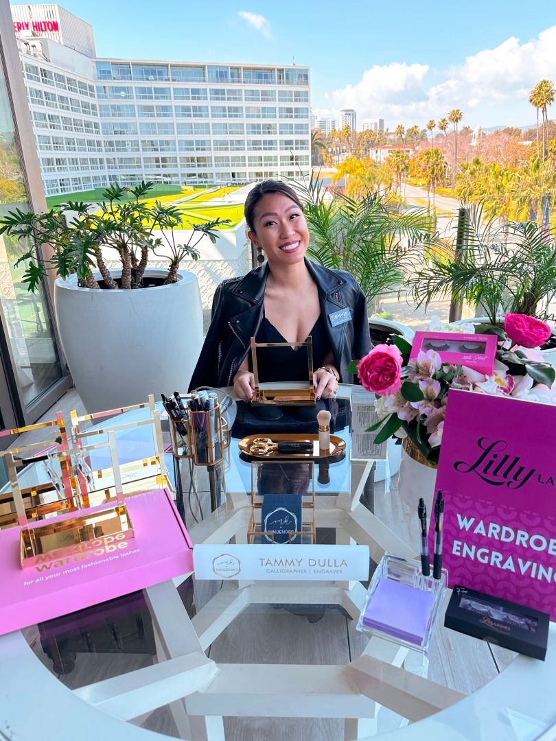 Ink & Innuendos was literally born out of love in 2015 when I got engaged. It started as an outlet for my creative, artistic love because I planned and designed our entire wedding. I was self-taught in modern calligraphy so I loved being able to create all our signage and details. My work started generating buzz from friends, family and social media so I quickly took on commissions for extra income while still working my corporate job. I never imagined my hobby from then would transform into the business I have now. I have now completely pivoted into live events, brand activations, and experiential marketing. With almost 10 years in the making, I have experimented with countless different skills, and have said yes to an abundance of projects that definitely did not align with my passion or vision. If anyone says starting and sustaining their own business was easy, I would love to know the secret! I am certainly proud of each step I have taken- it has not been easy, but I can see now that I have gone through everything I did to be my best self now for my business and my clients. If I did not go through that squirrel syndrome of trying everything, I would not know what I truly love and want to offer, which is performing live calligraphy, engraving, painting, and hot foiling. Throughout all these years, I have managed to stay true to myself and let my personality shine through my work and client communication. There are millions of talented artists out there doing what I do, so how I set myself apart is by being my genuine self, and always anticipating the needs of my clients to ensure a seamless experience.