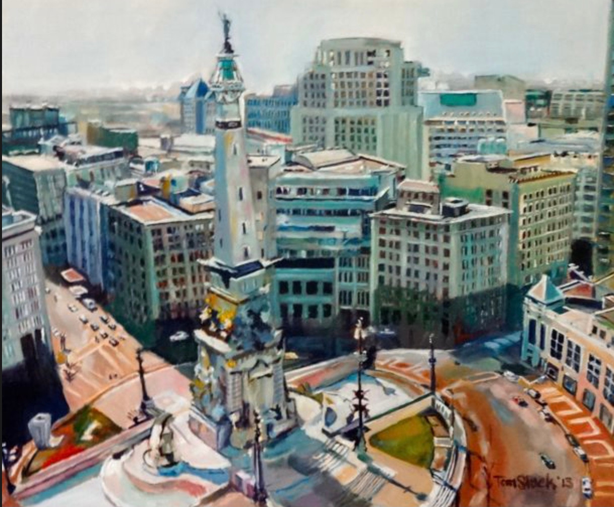 The next morning we go to the Indianapolis Motor Speedway. First we will explore their museum where we’ll see cars that have won the race over the past several decades. Next we’ll climb on a bus and drive completely around the track. We will stop at the finish line. We’ll get out, bend over and kiss the bricks. The local Latin Festival will be going on nearby, so we’ll stop to see dancers from most of the countries in Latin America perform. I’ll take a lot of pictures to use in future paintings. That evening we will eat at The Crow’s Nest, a rotating restaurant that’s several stories above the city. We’ll enjoy seeing the stars, the moon, and the lights of the city.