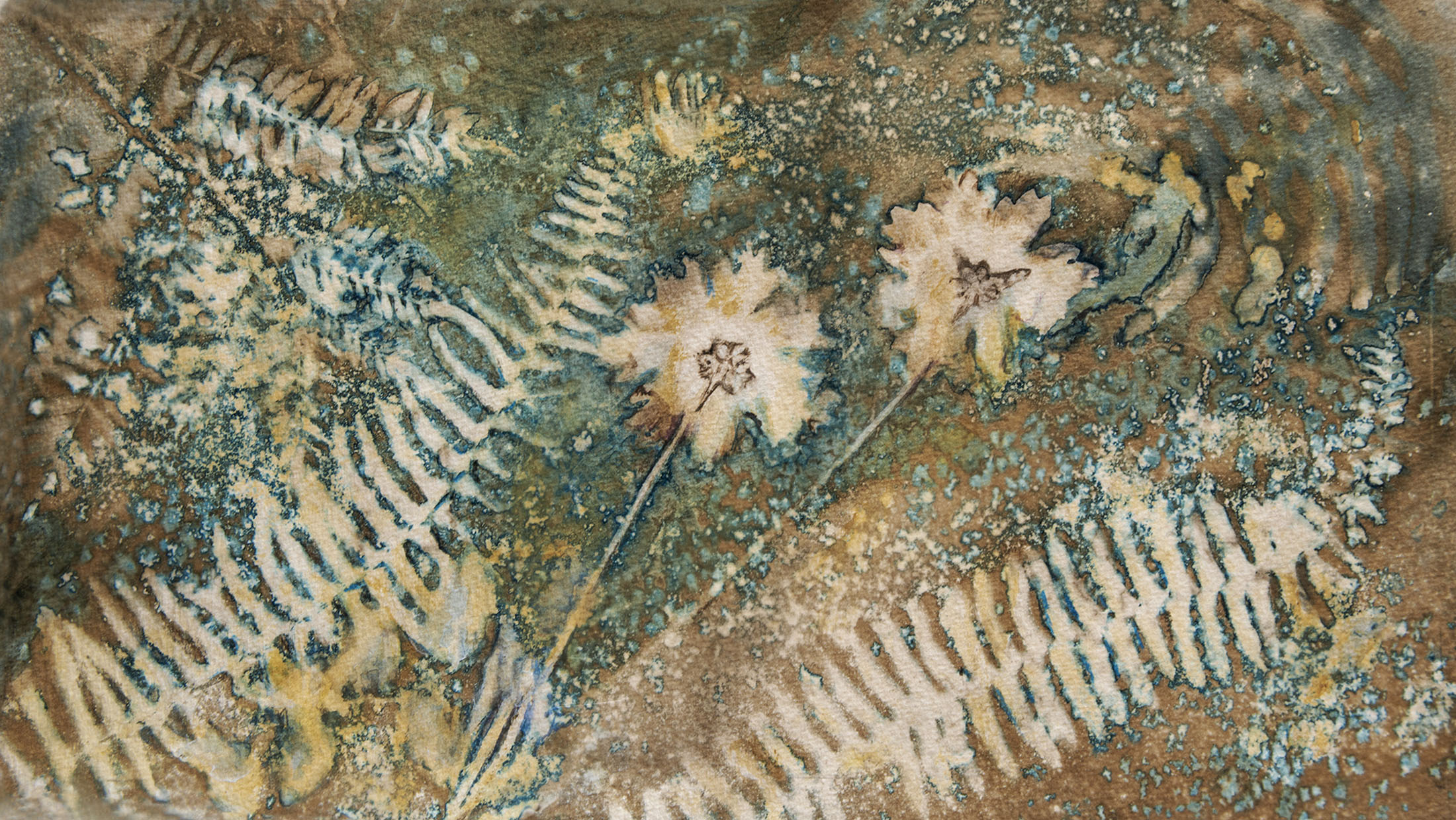 “Wild Garden No2” – Process: Wet Cyanotype Tea Toned and Hand Colored by Barbara Beck