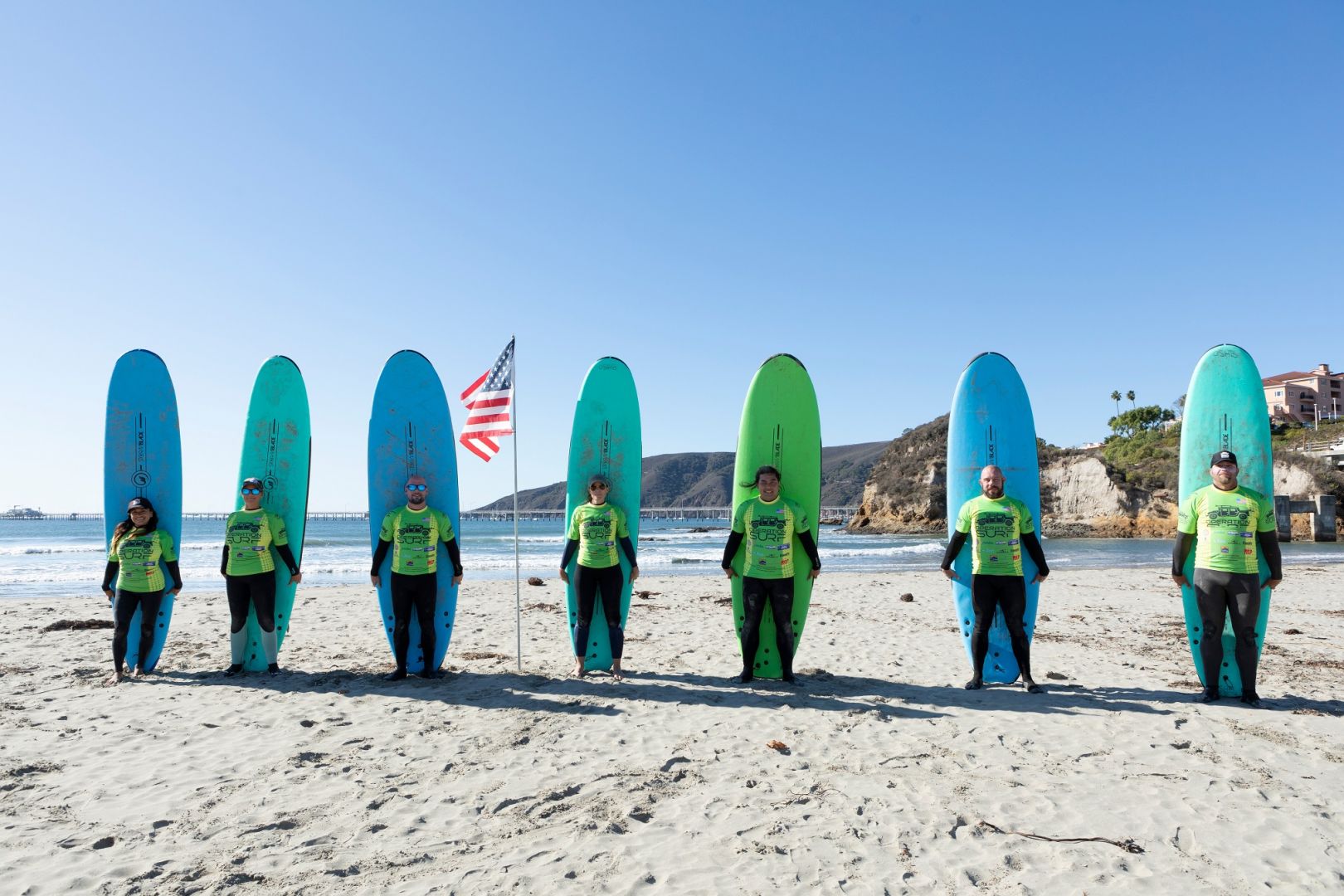 I would take them on tour up Highway 1, stopping at all the local landmarks like The Rock, Hearst Castle, the Sea Elephants, golfing in Morro Bay, and Monarch Dunes. Stopping at all the local eateries that support our programs like Taco Temple, Hoagies and end with a nice dinner at Novo on the patio under the big oak tree overlooking the creek. Ending our tour at our headquarters in Avila Beach for a surf session at VC Surf School alongside Operation Surf veteran participants whose lives have been changed by our programs.